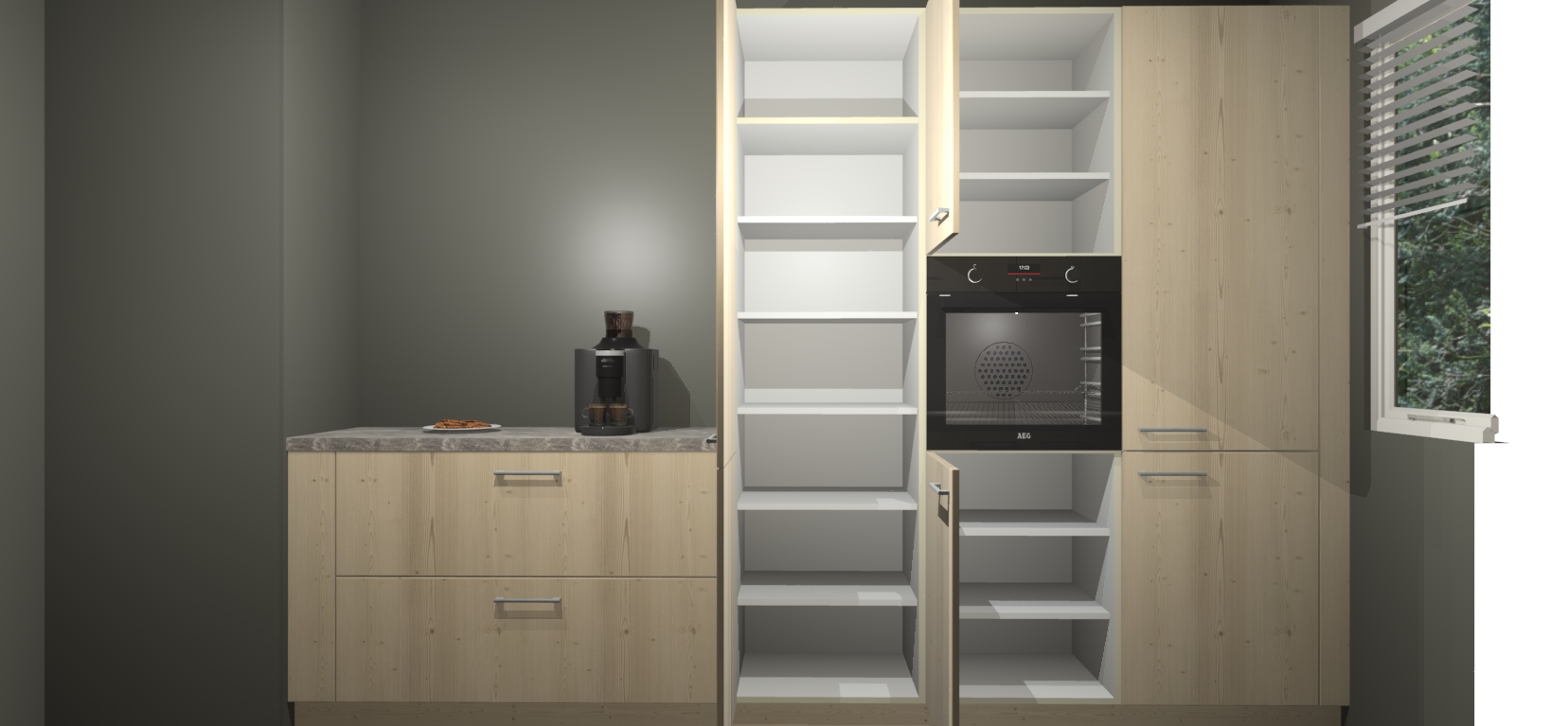 Een stijlvolle en praktische keuken als deze mag gezien worden. Dankzij de prachtige Vuren matte afwerking wordt de keuken gemakkelijk het middelpunt van uw huis - hij ziet er geweldig uit onder allerlei lichtomstandigheden, van dag tot nacht!