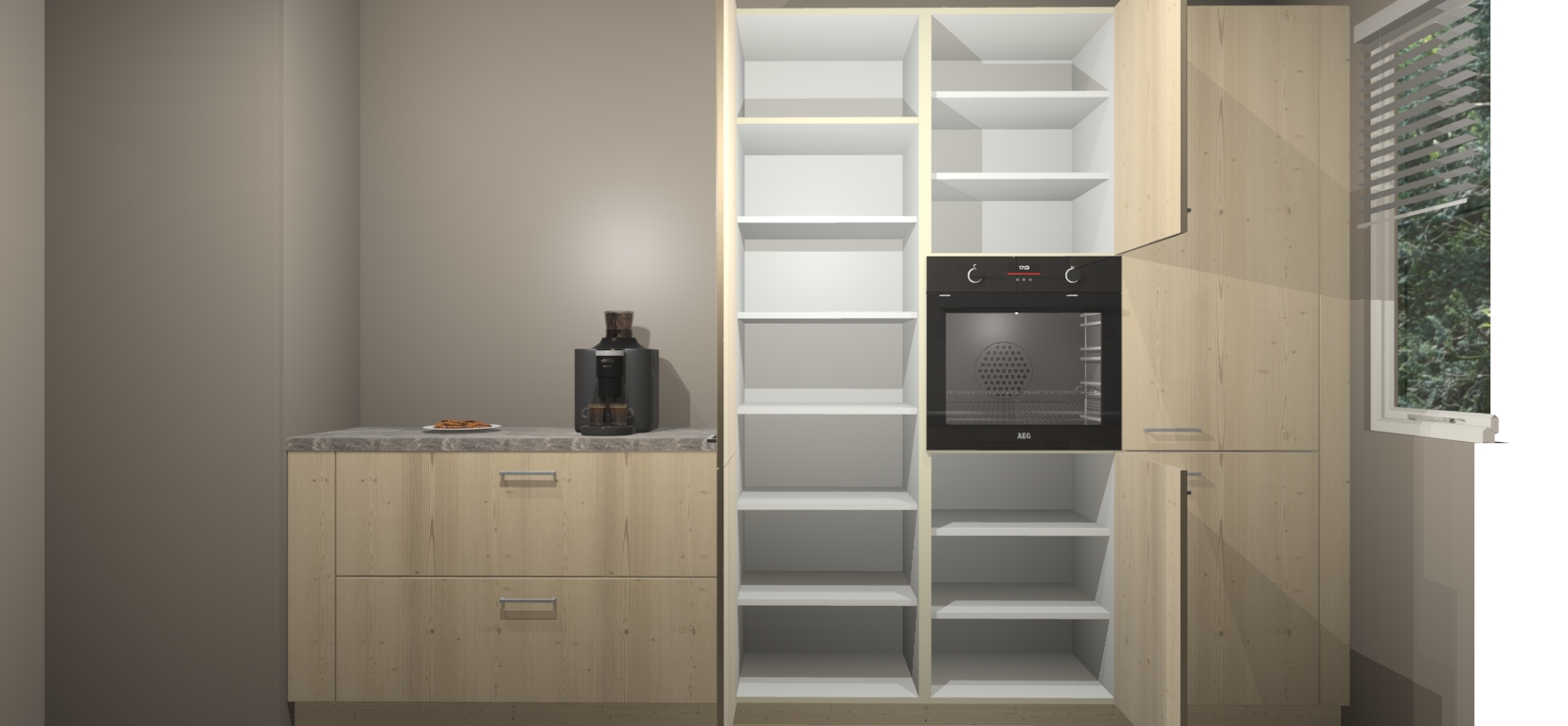 Een stijlvolle en praktische keuken als deze mag gezien worden. Dankzij de prachtige Vuren matte afwerking wordt de keuken gemakkelijk het middelpunt van uw huis - hij ziet er geweldig uit onder allerlei lichtomstandigheden, van dag tot nacht!