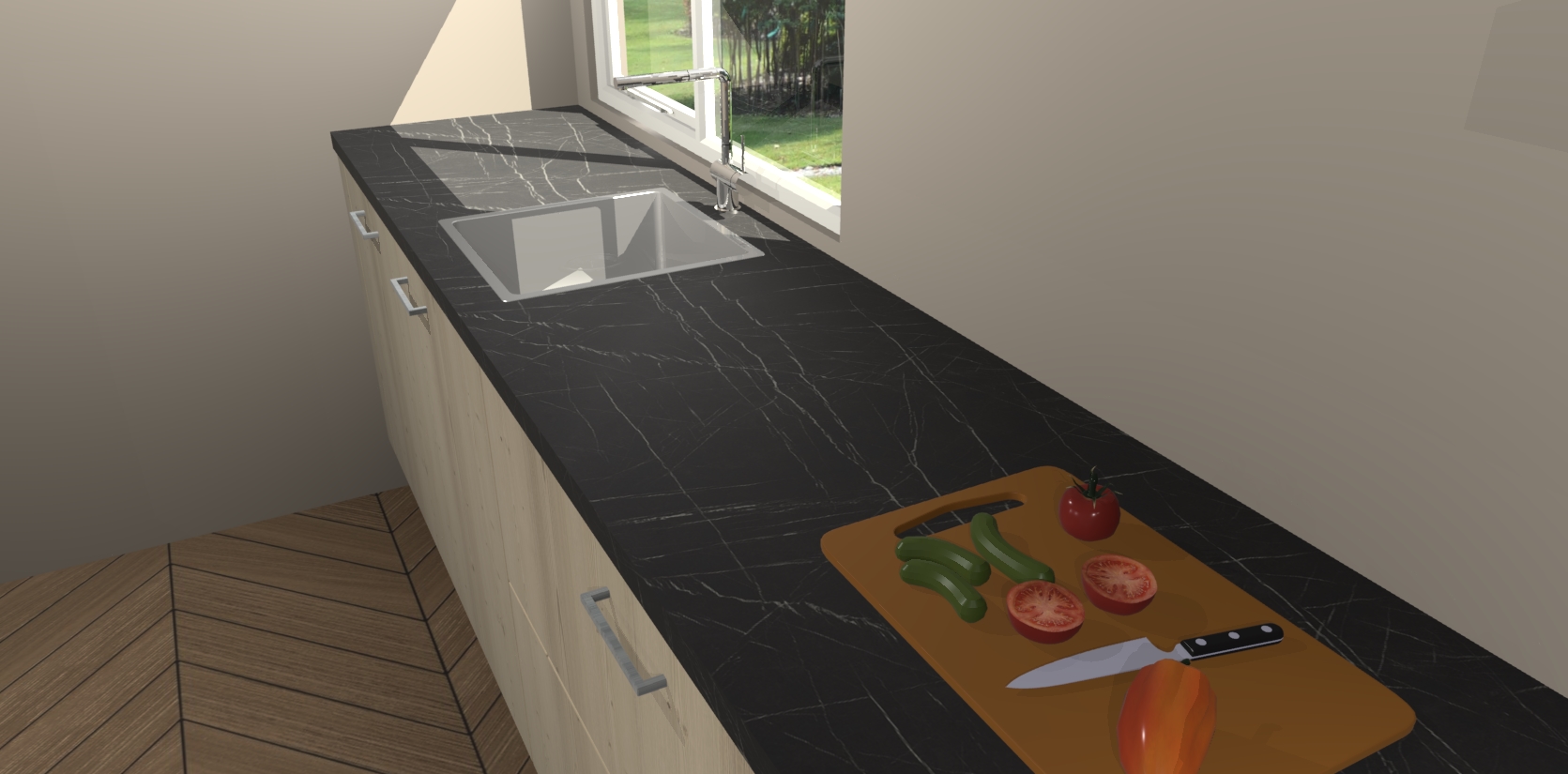- Bij een hoekwerkblad zijn de hoeken in gevreesd en op maat gemaakt
