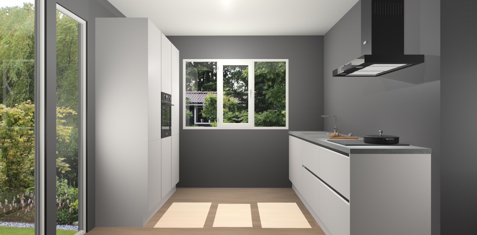 De softclose deuren openen en sluiten is ook heel eenvoudig - geniet van een moeiteloze keukenervaring, zelfs als er kinderen rondlopen. Voor extra gemak bij het plaatsen van uw bestelling bieden we ook een upgrade naar een kookplaat met geïntegreerde afzuiging.