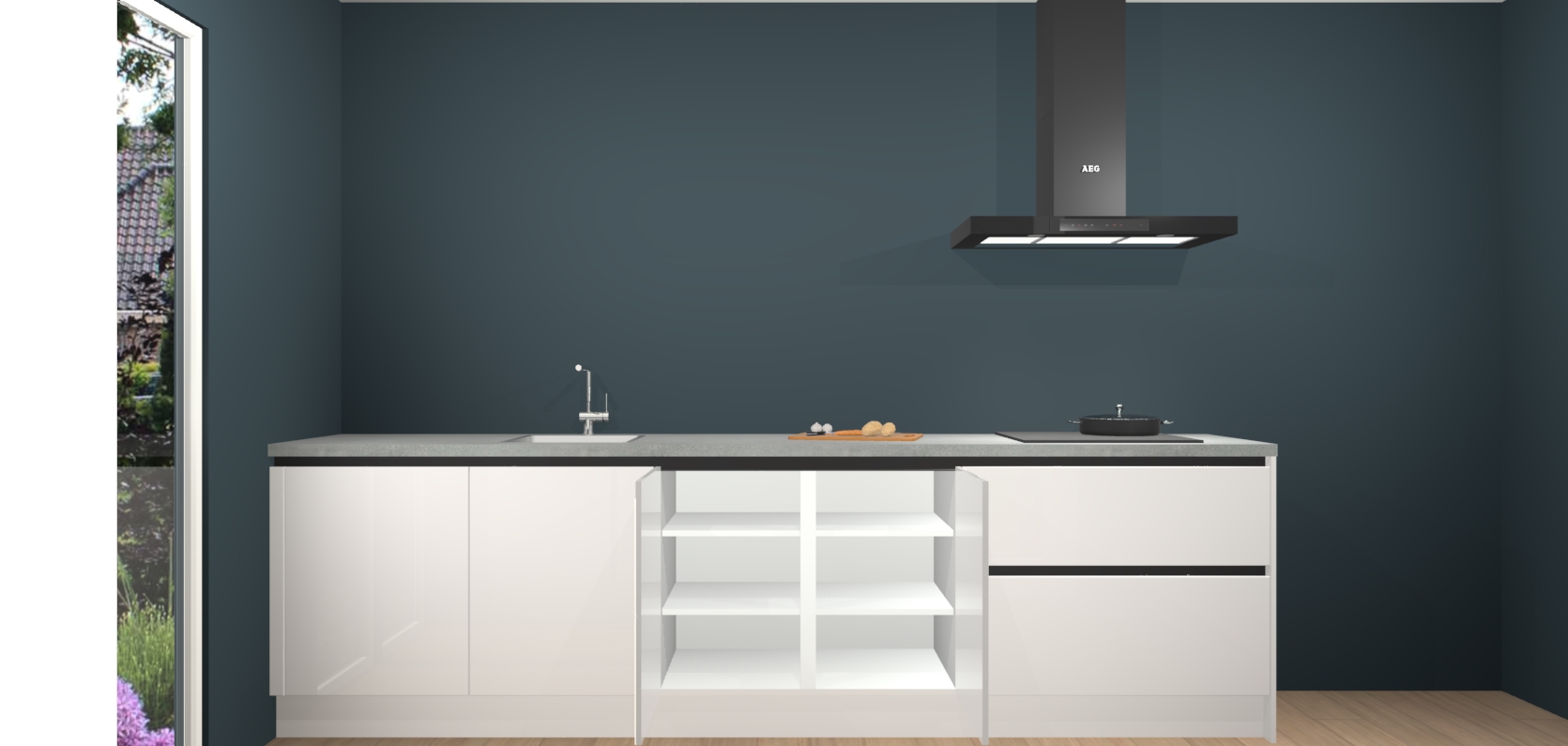 De softclose deuren openen en sluiten is ook heel eenvoudig - geniet van een moeiteloze keukenervaring, zelfs als er kinderen rondlopen. Voor extra gemak bij het plaatsen van uw bestelling bieden we ook een upgrade naar een kookplaat met geïntegreerde afzuiging.
