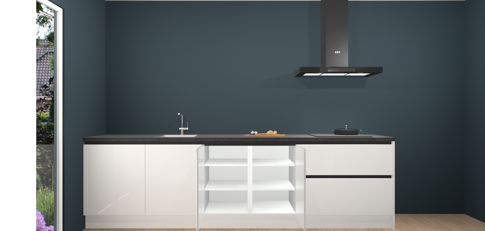 De softclose deuren openen en sluiten is ook heel eenvoudig - geniet van een moeiteloze keukenervaring, zelfs als er kinderen rondlopen. Voor extra gemak bij het plaatsen van uw bestelling bieden we ook een upgrade naar een kookplaat met geïntegreerde afzuiging.