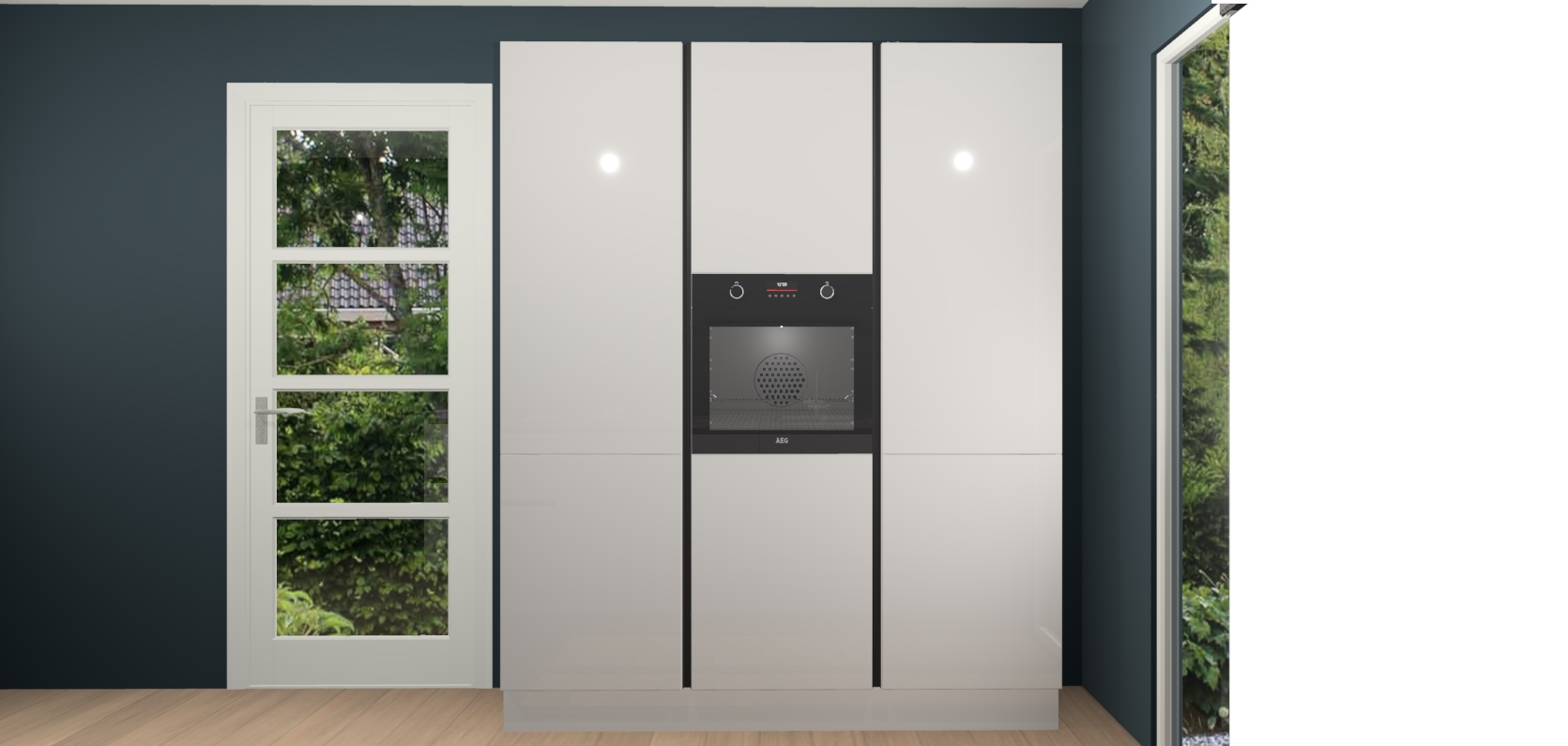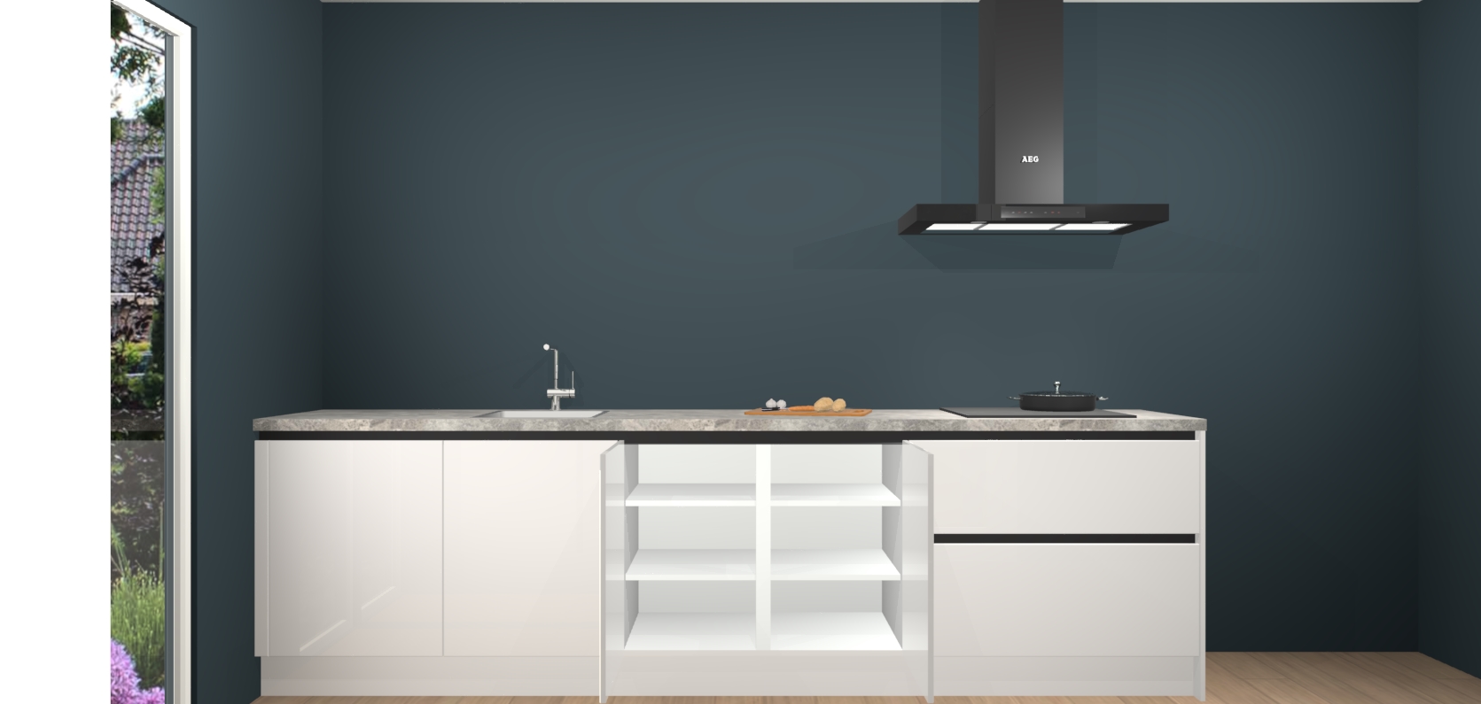 De softclose deuren openen en sluiten is ook heel eenvoudig - geniet van een moeiteloze keukenervaring, zelfs als er kinderen rondlopen. Voor extra gemak bij het plaatsen van uw bestelling bieden we ook een upgrade naar een kookplaat met geïntegreerde afzuiging.