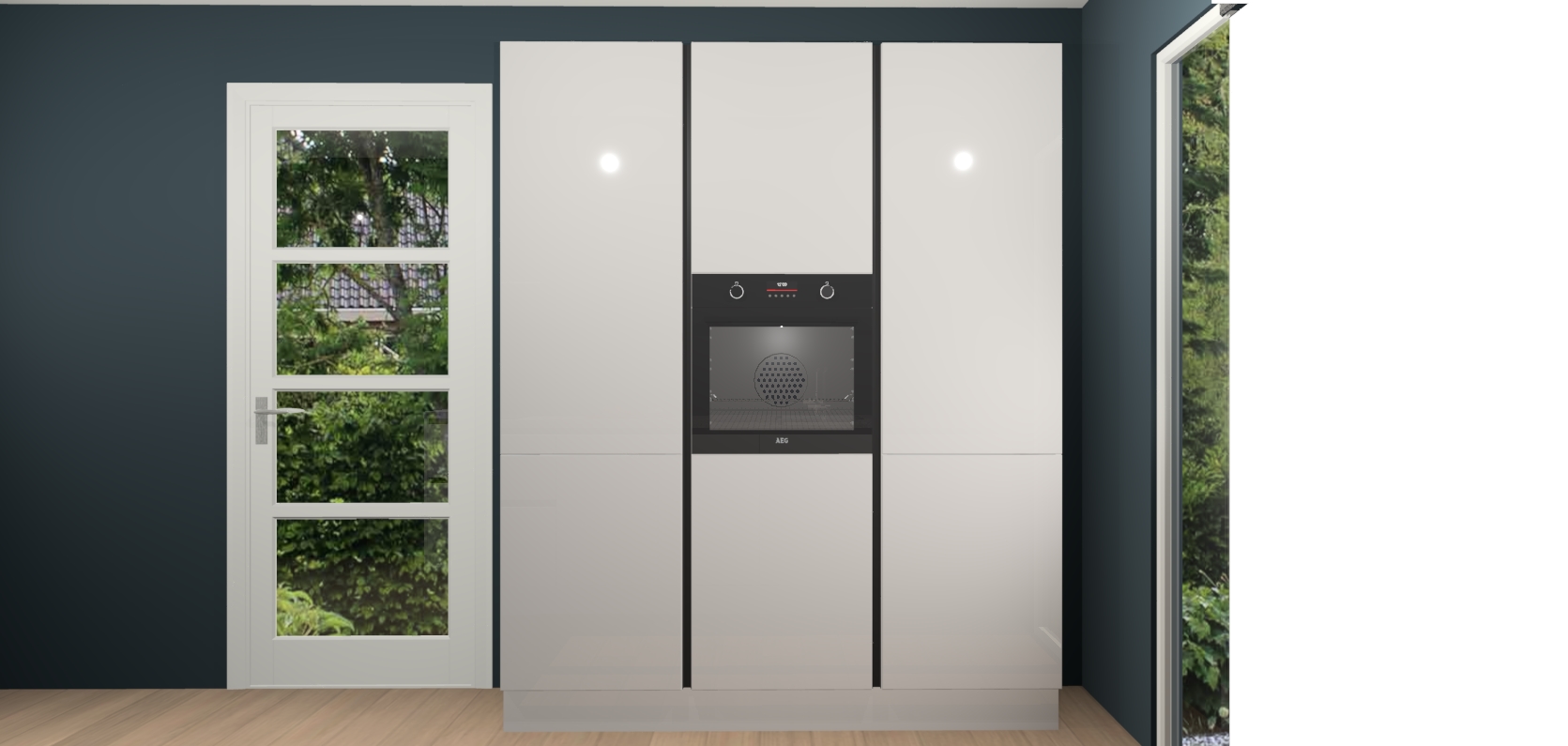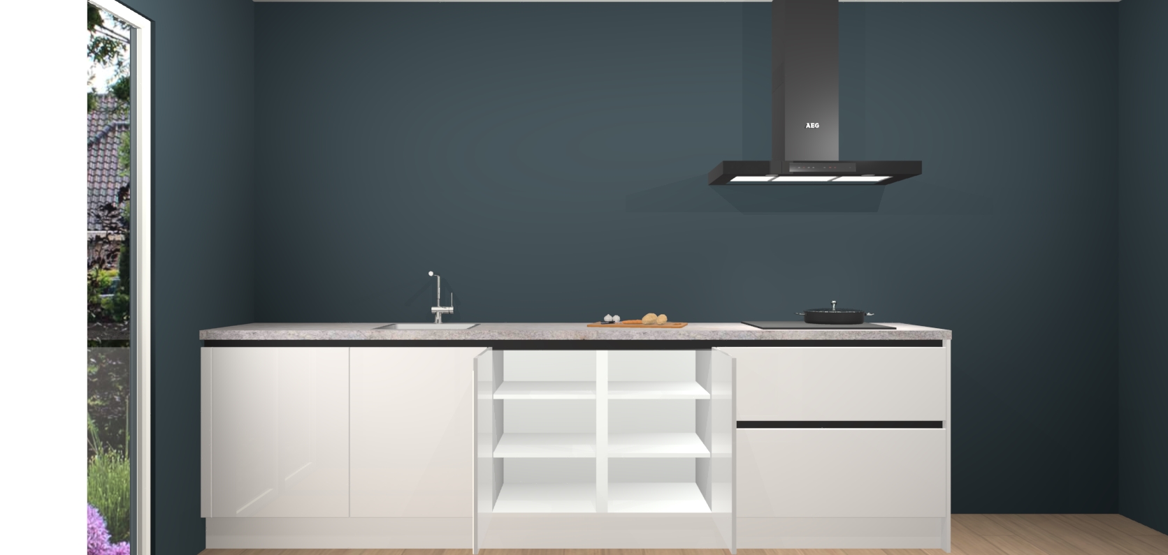De softclose deuren openen en sluiten is ook heel eenvoudig - geniet van een moeiteloze keukenervaring, zelfs als er kinderen rondlopen. Voor extra gemak bij het plaatsen van uw bestelling bieden we ook een upgrade naar een kookplaat met geïntegreerde afzuiging.