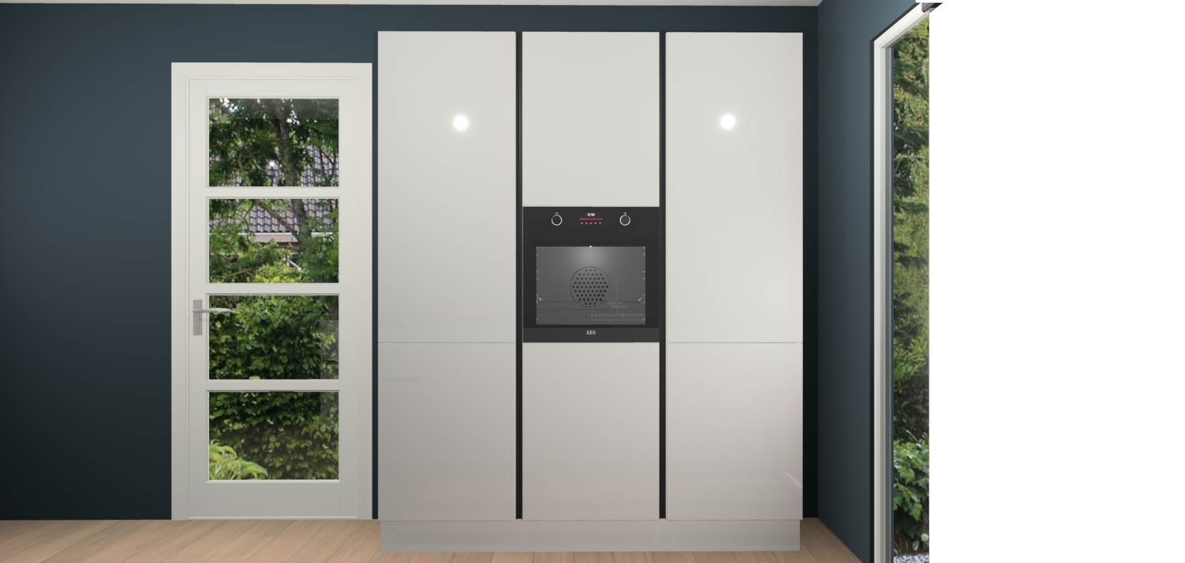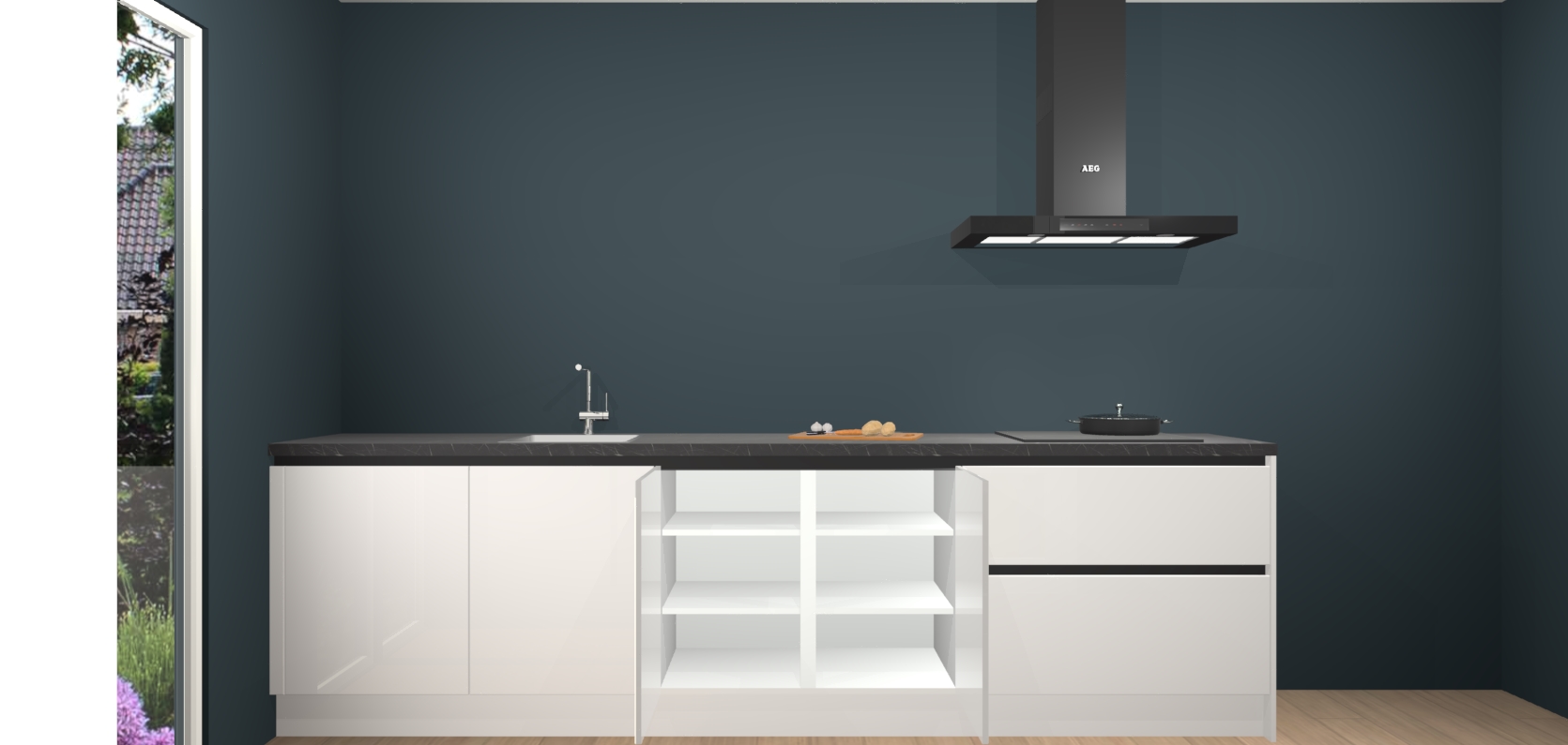De softclose deuren openen en sluiten is ook heel eenvoudig - geniet van een moeiteloze keukenervaring, zelfs als er kinderen rondlopen. Voor extra gemak bij het plaatsen van uw bestelling bieden we ook een upgrade naar een kookplaat met geïntegreerde afzuiging.