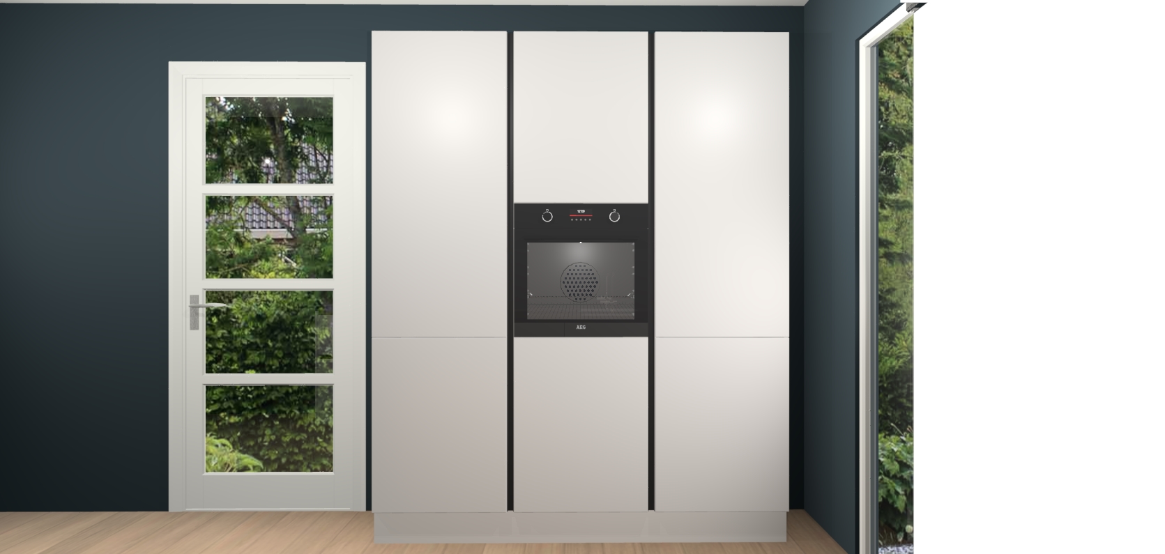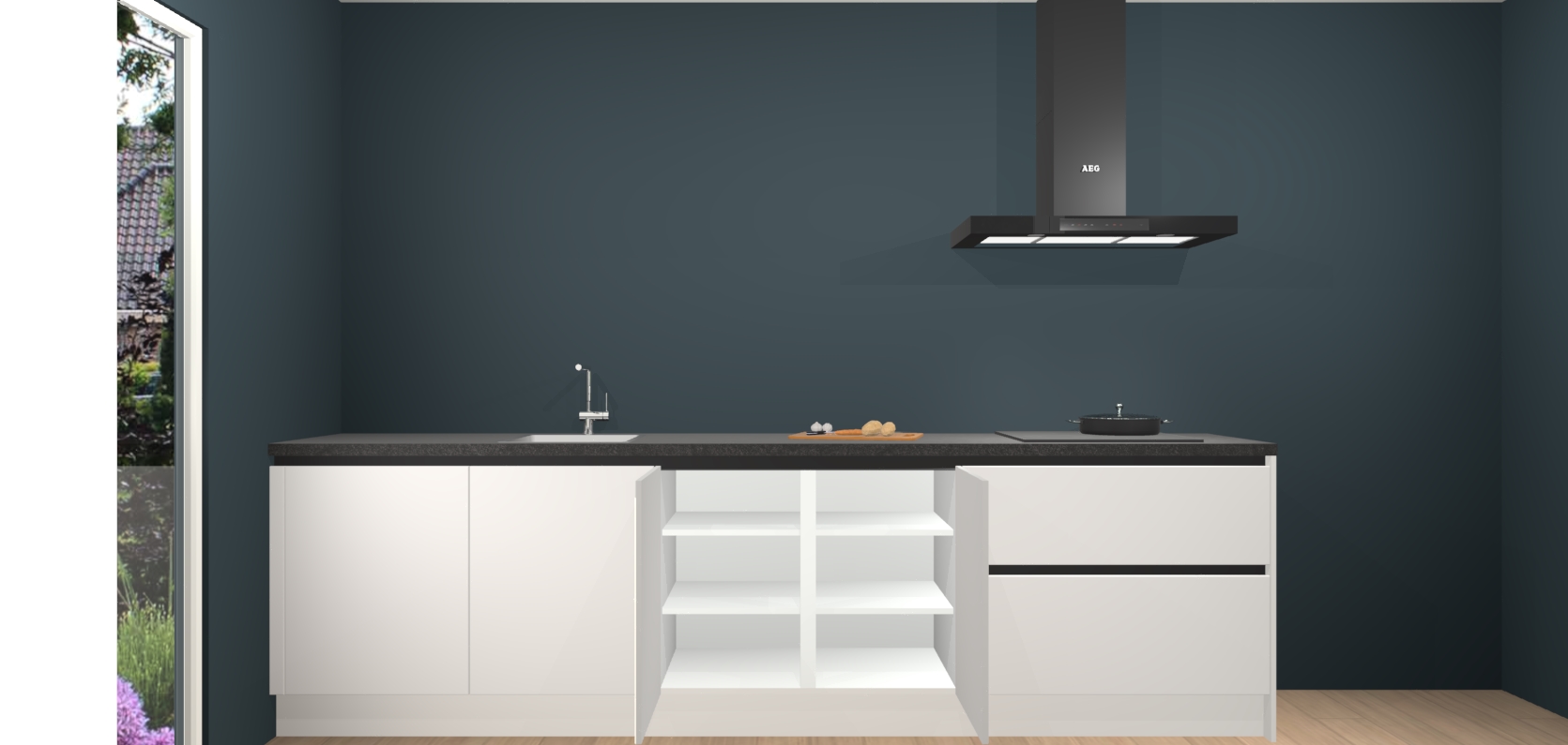De softclose deuren openen en sluiten is ook heel eenvoudig - geniet van een moeiteloze keukenervaring, zelfs als er kinderen rondlopen. Voor extra gemak bij het plaatsen van uw bestelling bieden we ook een upgrade naar een kookplaat met geïntegreerde afzuiging.