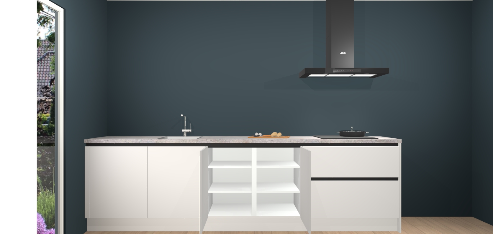 De softclose deuren openen en sluiten is ook heel eenvoudig - geniet van een moeiteloze keukenervaring, zelfs als er kinderen rondlopen. Voor extra gemak bij het plaatsen van uw bestelling bieden we ook een upgrade naar een kookplaat met geïntegreerde afzuiging.