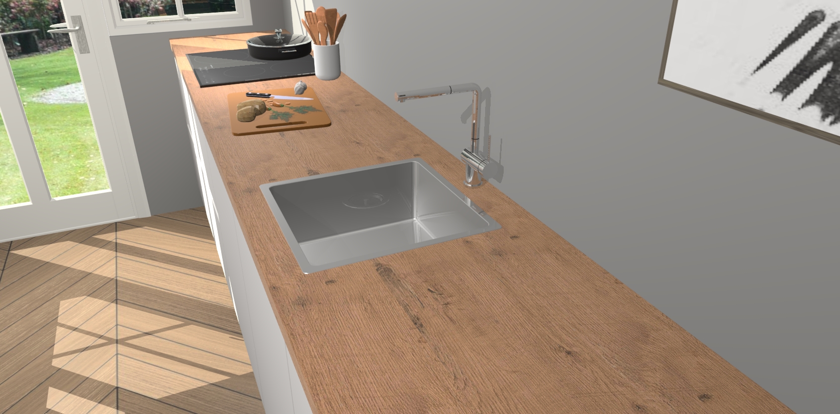 - Bij een hoekwerkblad zijn de hoeken in gevreesd en op maat gemaakt
