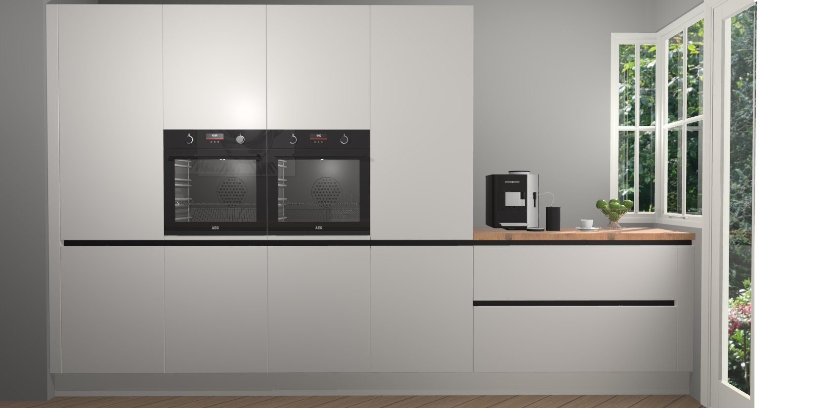 Een stijlvolle en praktische keuken als deze mag gezien worden. Dankzij de prachtige zijdegrijze matte afwerking wordt de keuken gemakkelijk het middelpunt van uw huis - hij ziet er geweldig uit onder allerlei lichtomstandigheden, van dag tot nacht!