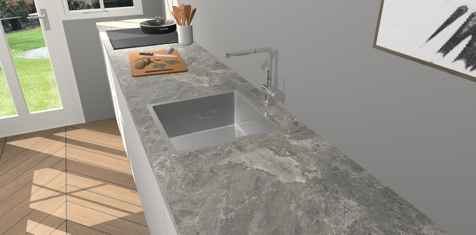 • Bij een hoekwerkblad zijn de hoeken in gevreesd en op maat gemaakt