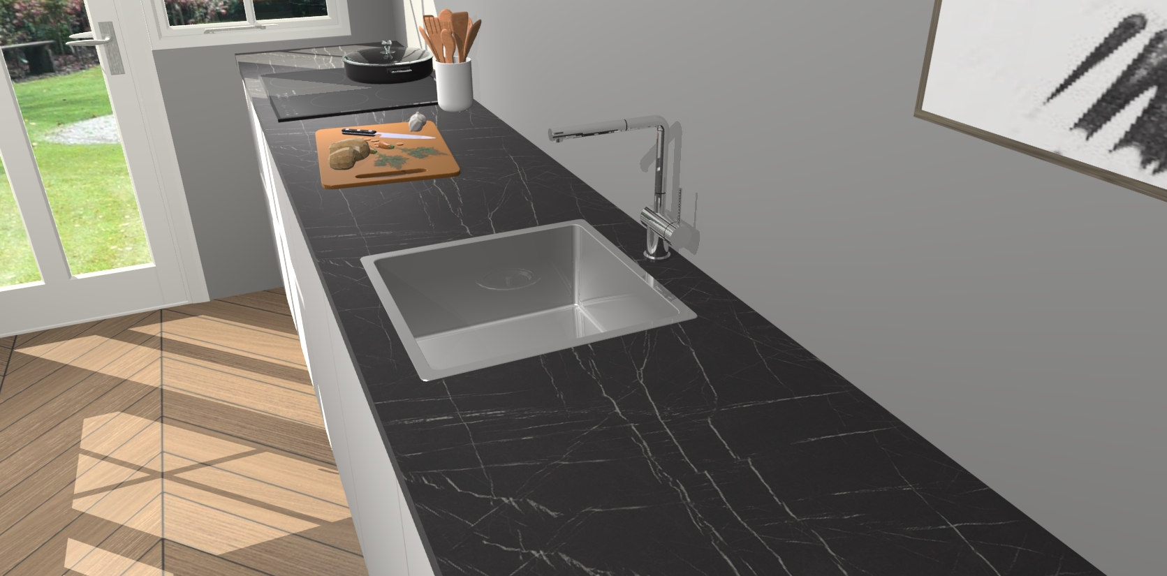 - Bij een hoekwerkblad zijn de hoeken in gevreesd en op maat gemaakt