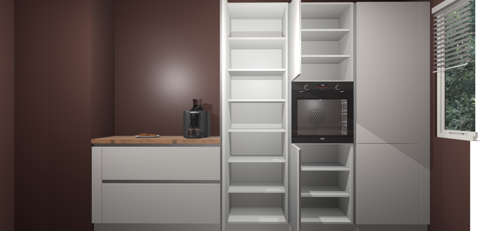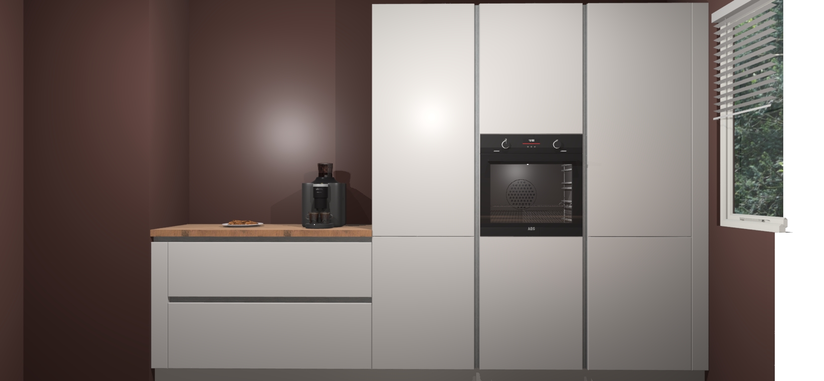 Een stijlvolle en praktische keuken als deze mag gezien worden. Dankzij de prachtige Zijdegrijze matte afwerking wordt de keuken gemakkelijk het middelpunt van uw huis - hij ziet er geweldig uit onder allerlei lichtomstandigheden, van dag tot nacht!