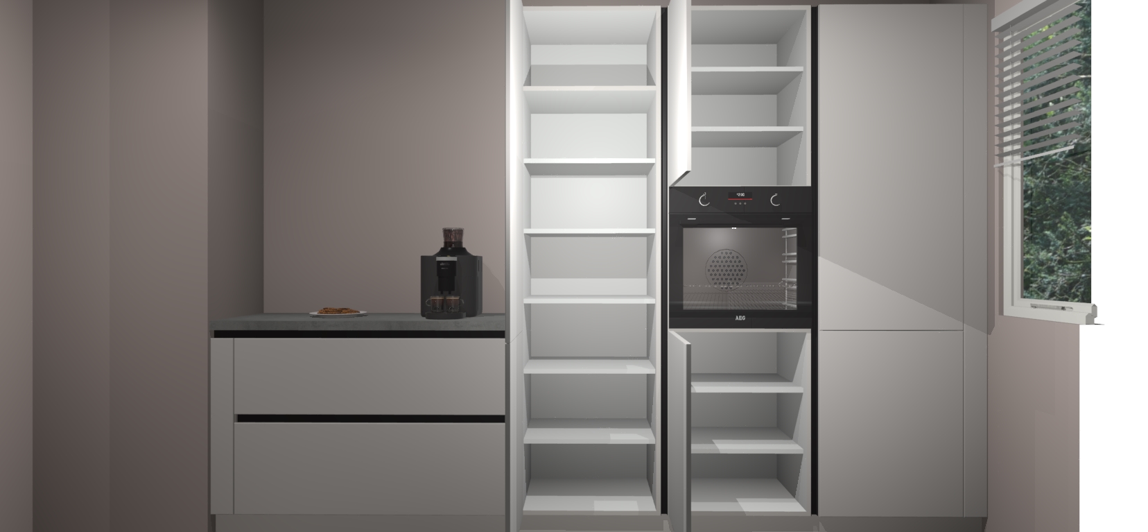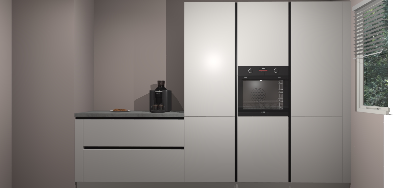 Een stijlvolle en praktische keuken als deze mag gezien worden. Dankzij de prachtige Zijdegrijze matte afwerking wordt de keuken gemakkelijk het middelpunt van uw huis - hij ziet er geweldig uit onder allerlei lichtomstandigheden, van dag tot nacht!