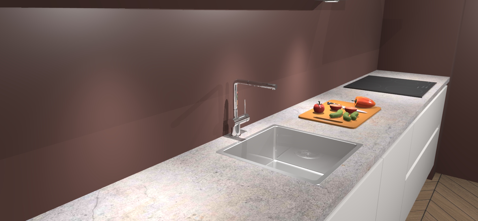 - Uitsparing van kookplaat, spoelbak en kraan dient u zelf te verzorgen.