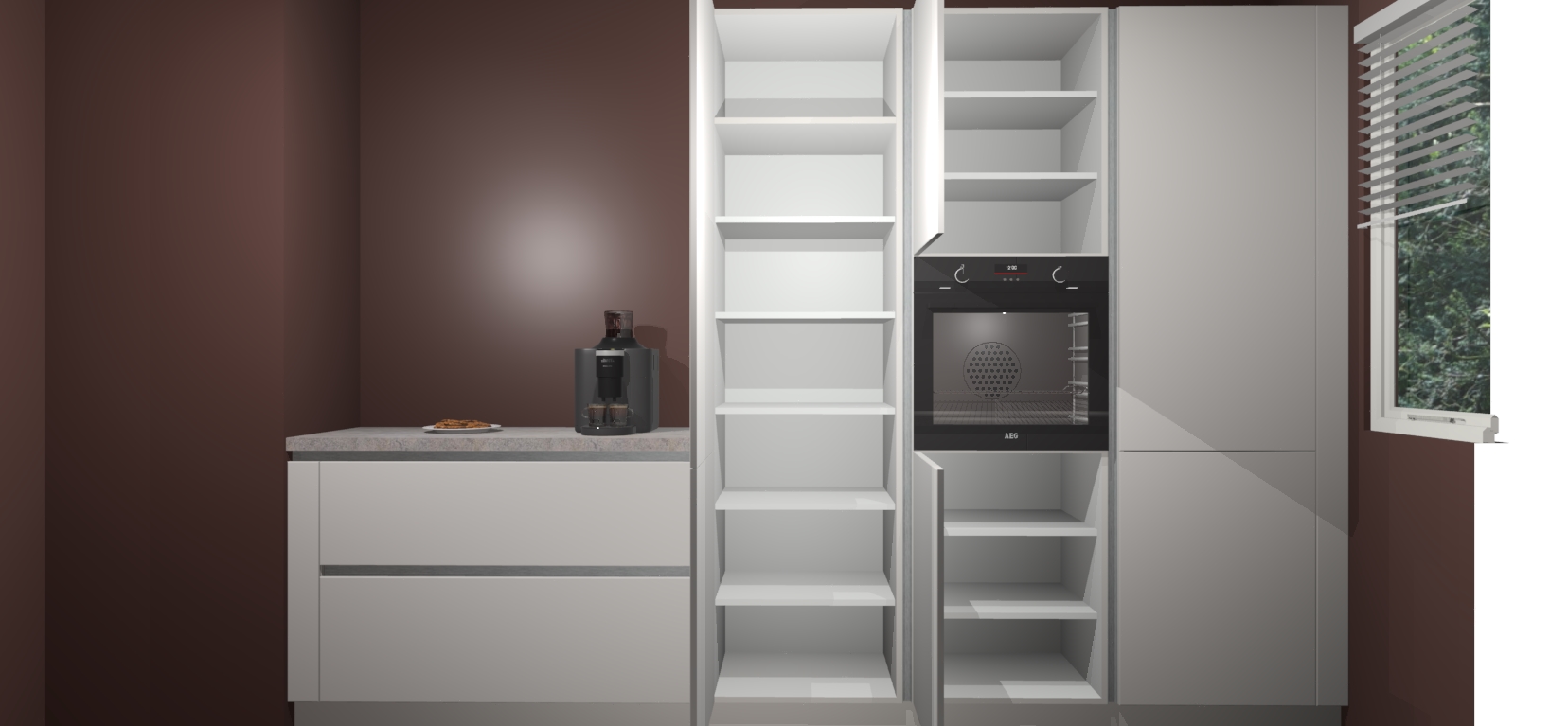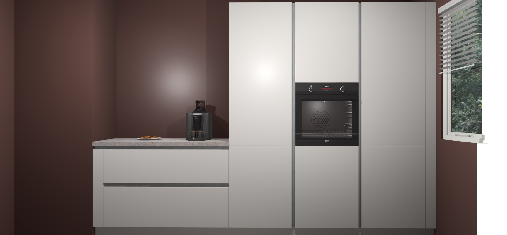 Een stijlvolle en praktische keuken als deze mag gezien worden. Dankzij de prachtige Zijdegrijze matte afwerking wordt de keuken gemakkelijk het middelpunt van uw huis - hij ziet er geweldig uit onder allerlei lichtomstandigheden, van dag tot nacht!