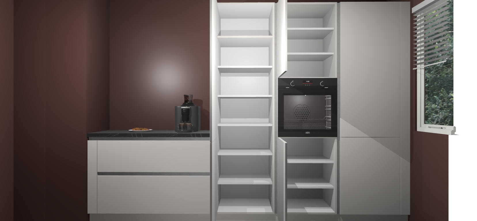 Een stijlvolle en praktische keuken als deze mag gezien worden. Dankzij de prachtige Zijdegrijze matte afwerking wordt de keuken gemakkelijk het middelpunt van uw huis - hij ziet er geweldig uit onder allerlei lichtomstandigheden, van dag tot nacht!