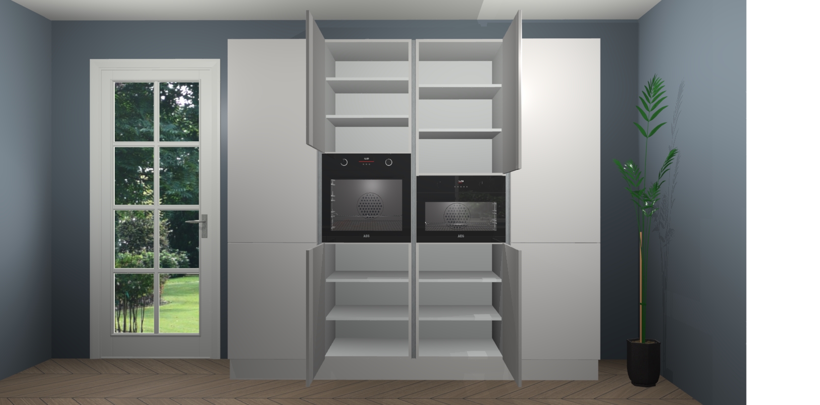 Een stijlvolle en praktische keuken als deze mag gezien worden. Dankzij de prachtige matte afwerking wordt de keuken gemakkelijk het middelpunt van uw huis - hij ziet er geweldig uit onder allerlei lichtomstandigheden, van dag tot nacht!