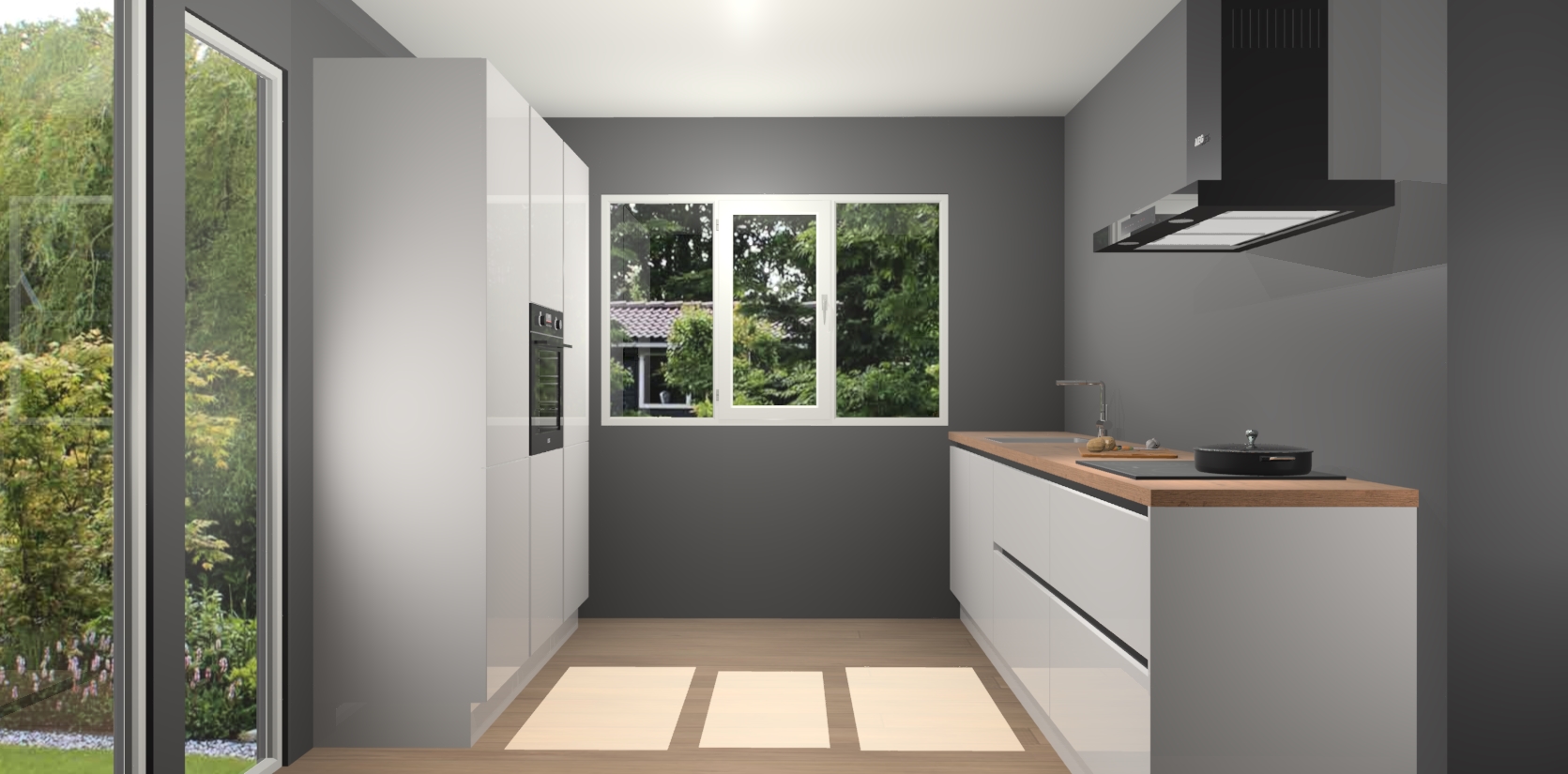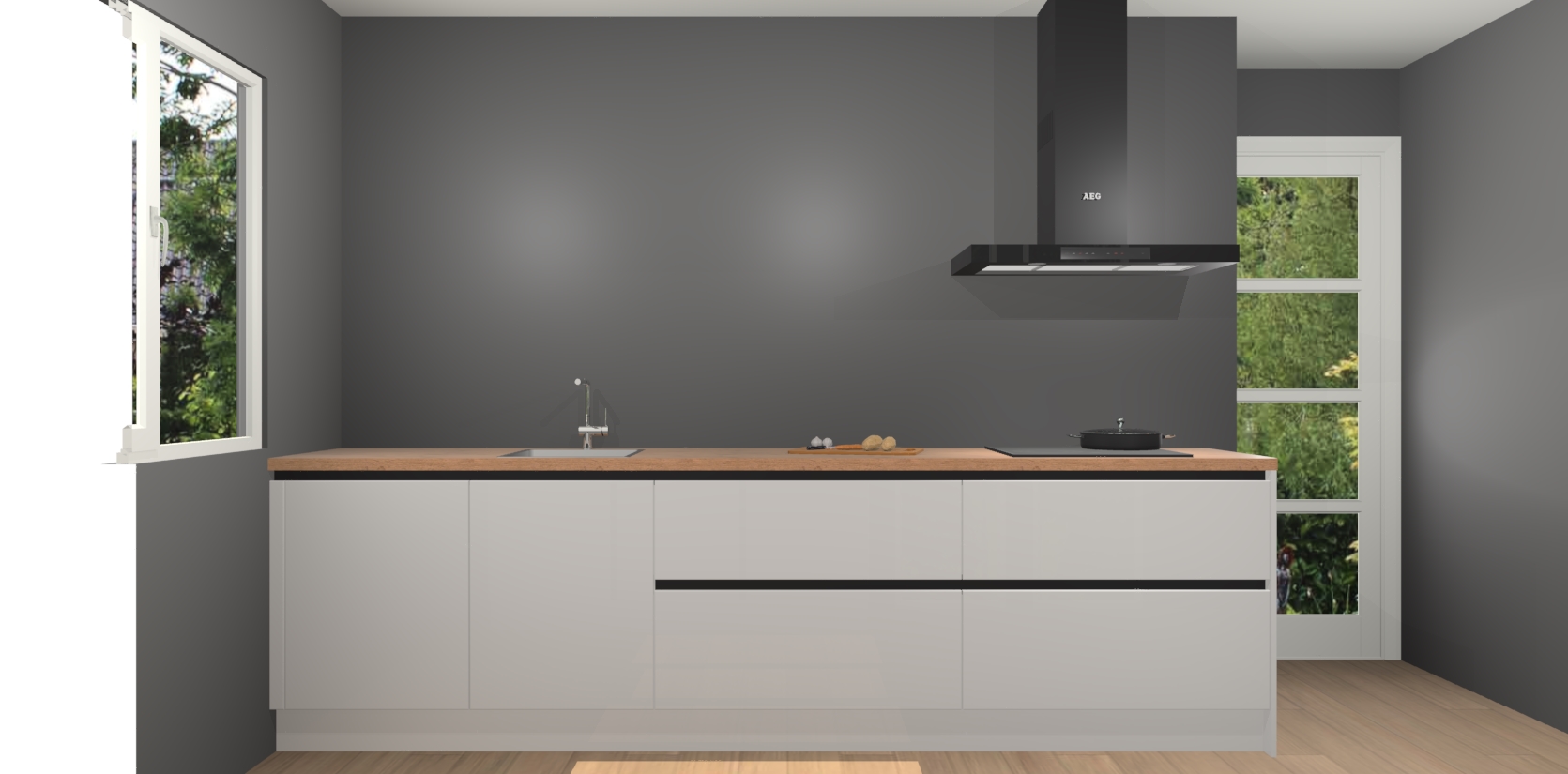 De softclose deuren openen en sluiten is ook heel eenvoudig - geniet van een moeiteloze keukenervaring, zelfs als er kinderen rondlopen. Voor extra gemak bij het plaatsen van uw bestelling bieden we ook een upgrade naar een kookplaat met geïntegreerde afzuiging.