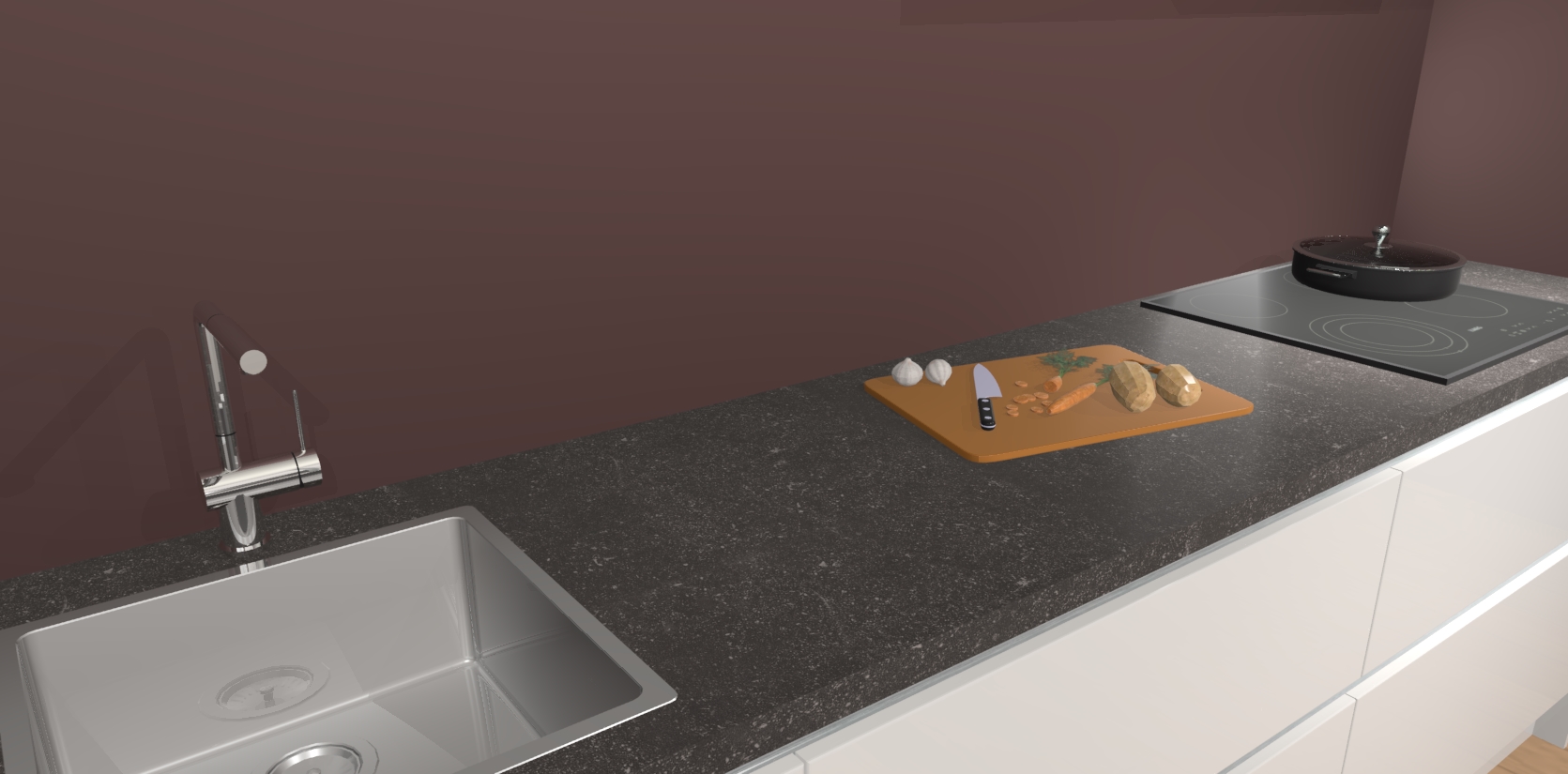 - Uitsparing van kookplaat, spoelbak en kraan dient u zelf te verzorgen.