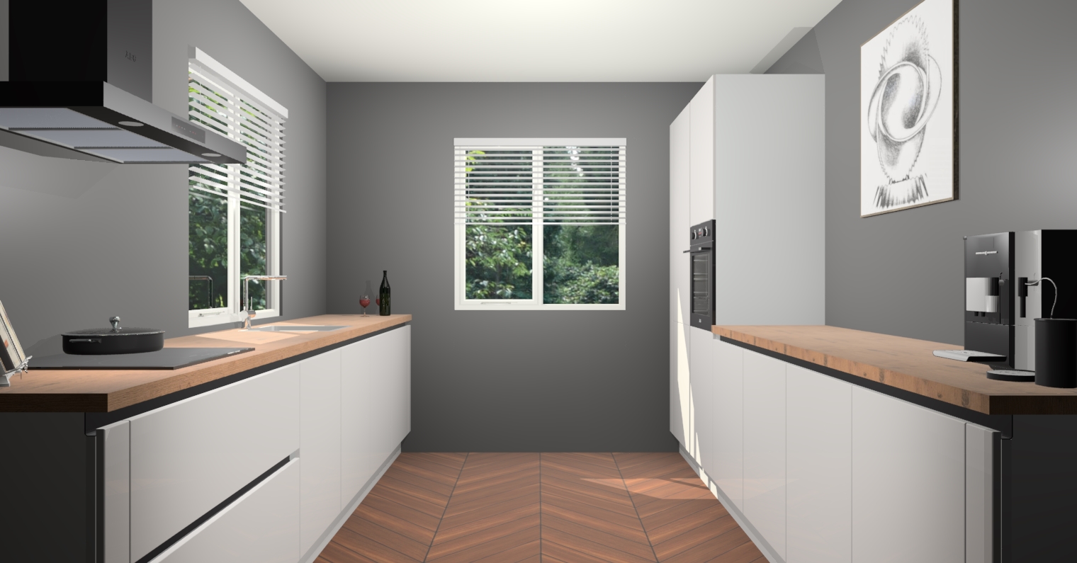 Welkom bij de Zijdegrijze hoogglans greeploze keuken Lusaka. Deze prachtige keuken zal de komende jaren het middelpunt van de belangstelling in uw huis zijn. Uitgerust met vijf inbouwapparaten komt u nooit kookgereedschap tekort. Bovendien geeft de warme houtlook elke ruimte een uitnodigende en tijdloze uitstraling.