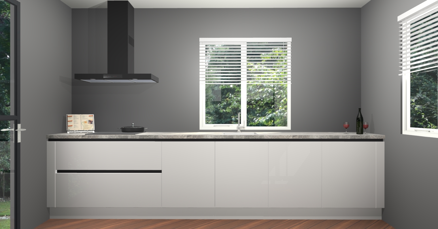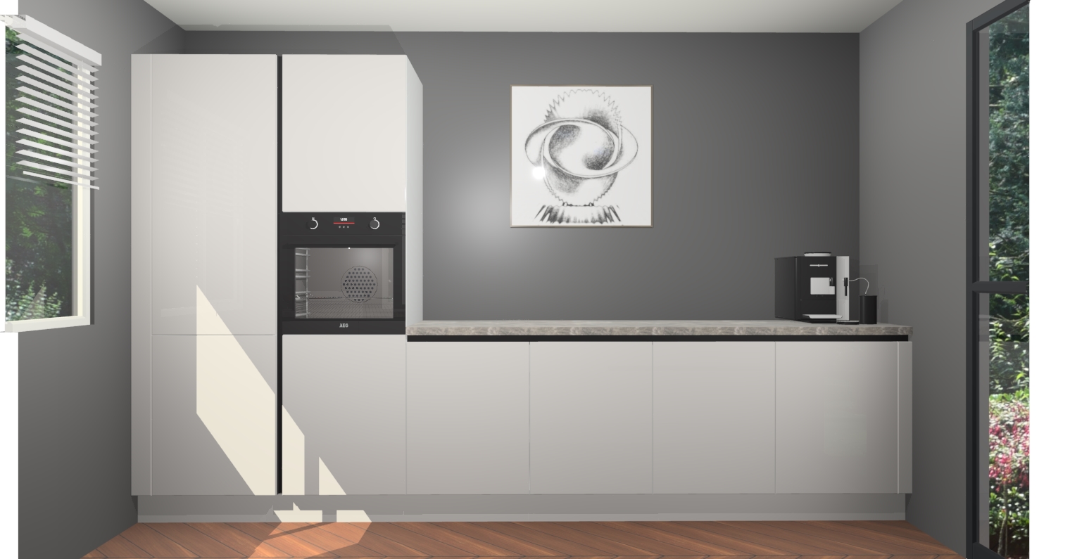 Welkom bij de Zijdegrijze hoogglans greeploze keuken Lusaka. Deze prachtige keuken zal de komende jaren het middelpunt van de belangstelling in uw huis zijn. Uitgerust met vijf inbouwapparaten komt u nooit kookgereedschap tekort. Bovendien geeft de warme houtlook elke ruimte een uitnodigende en tijdloze uitstraling.