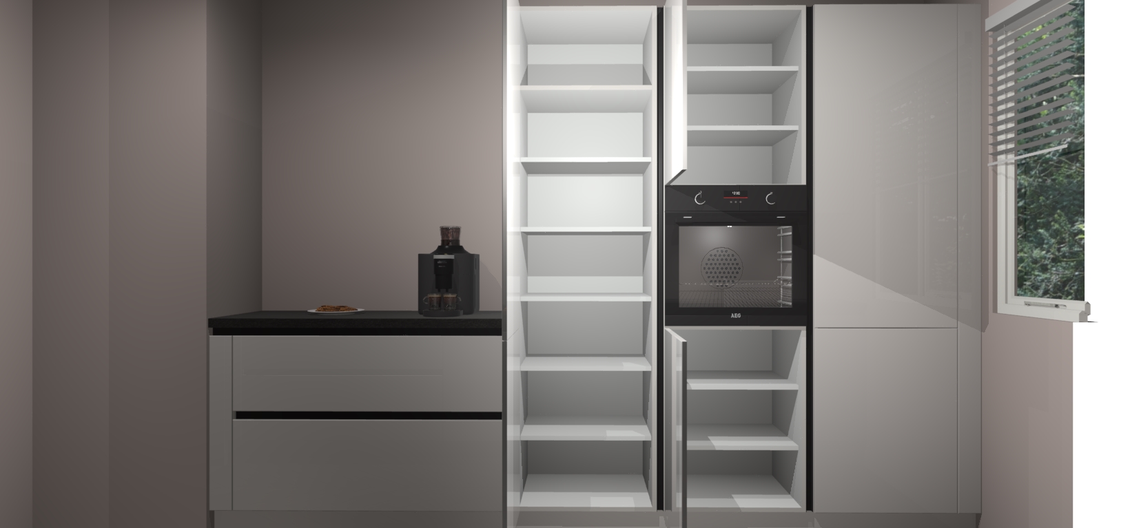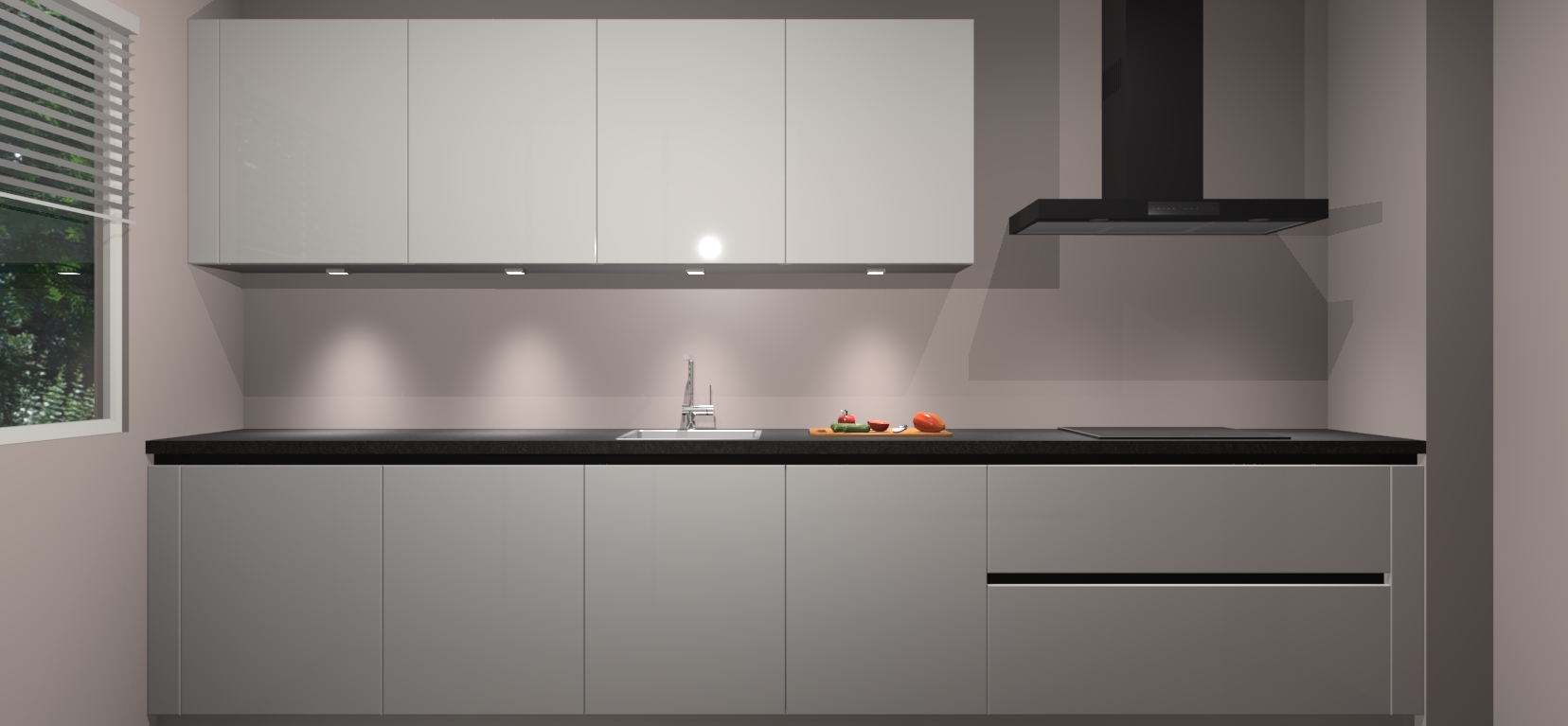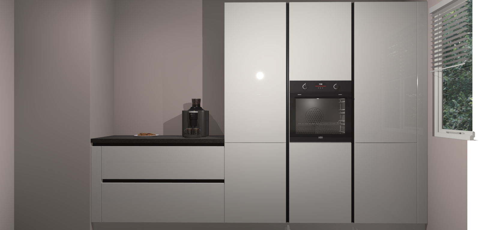 Een stijlvolle en praktische keuken als deze mag gezien worden. Dankzij de prachtige Zijdegrijze hoogglans afwerking wordt de keuken gemakkelijk het middelpunt van uw huis - hij ziet er geweldig uit onder allerlei lichtomstandigheden, van dag tot nacht!