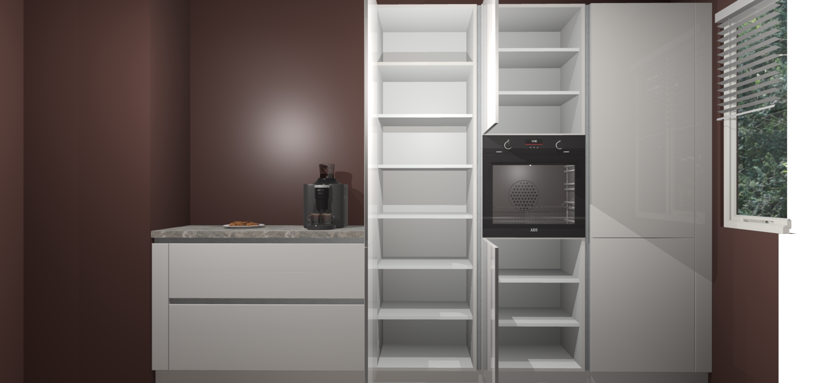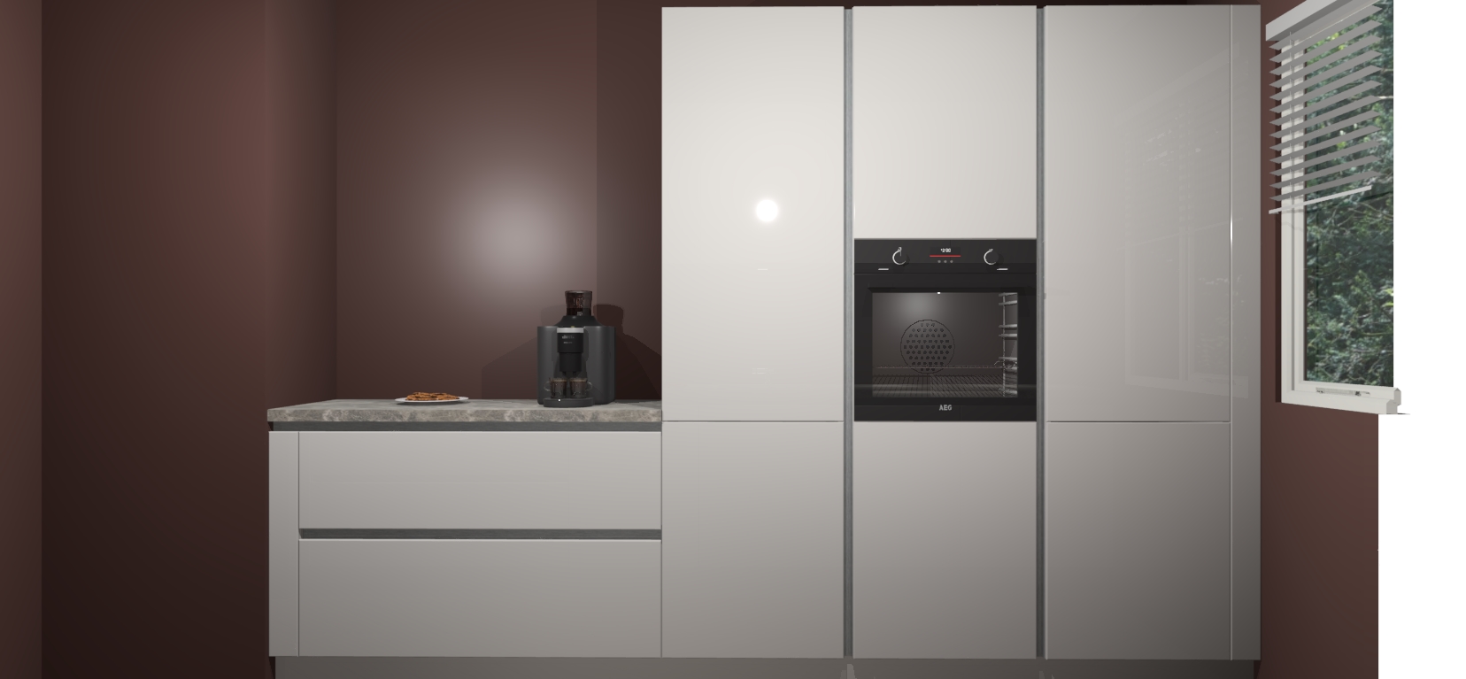 Een stijlvolle en praktische keuken als deze mag gezien worden. Dankzij de prachtige Zijdegrijze hoogglans afwerking wordt de keuken gemakkelijk het middelpunt van uw huis - hij ziet er geweldig uit onder allerlei lichtomstandigheden, van dag tot nacht!