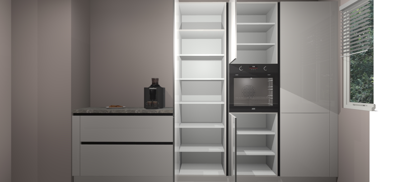 Een stijlvolle en praktische keuken als deze mag gezien worden. Dankzij de prachtige Zijdegrijze hoogglans afwerking wordt de keuken gemakkelijk het middelpunt van uw huis - hij ziet er geweldig uit onder allerlei lichtomstandigheden, van dag tot nacht!