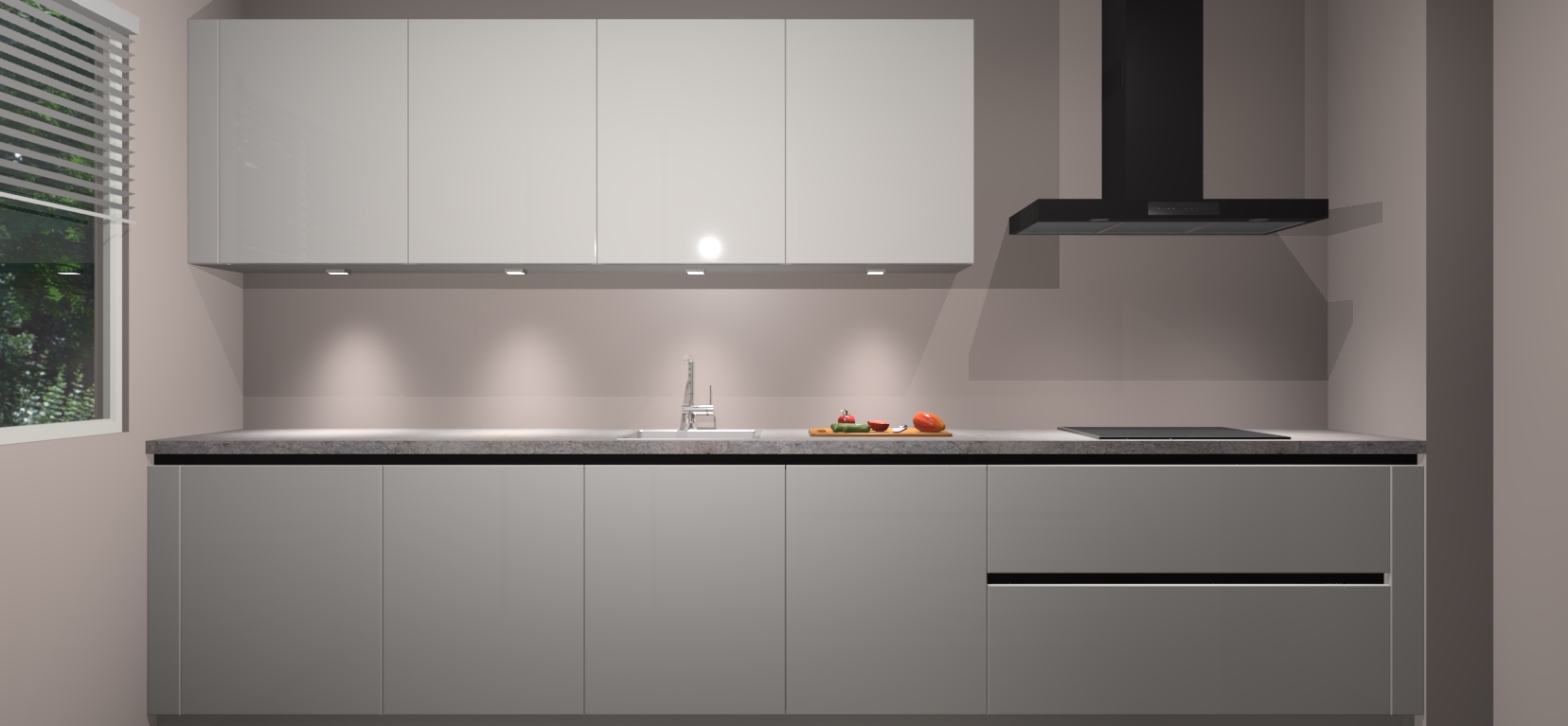 Een stijlvolle en praktische keuken als deze mag gezien worden. Dankzij de prachtige Zijdegrijze hoogglans afwerking wordt de keuken gemakkelijk het middelpunt van uw huis - hij ziet er geweldig uit onder allerlei lichtomstandigheden, van dag tot nacht!