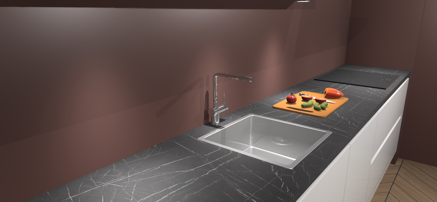 - Uitsparing van kookplaat, spoelbak en kraan dient u zelf te verzorgen.