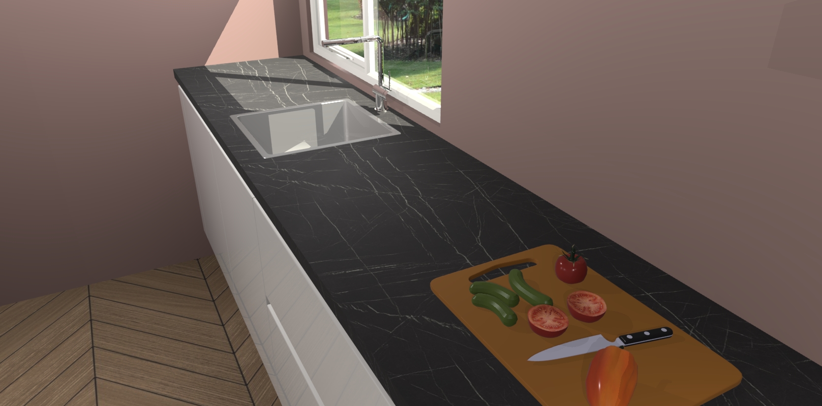 - Bij een hoekwerkblad zijn de hoeken in gevreesd en op maat gemaakt