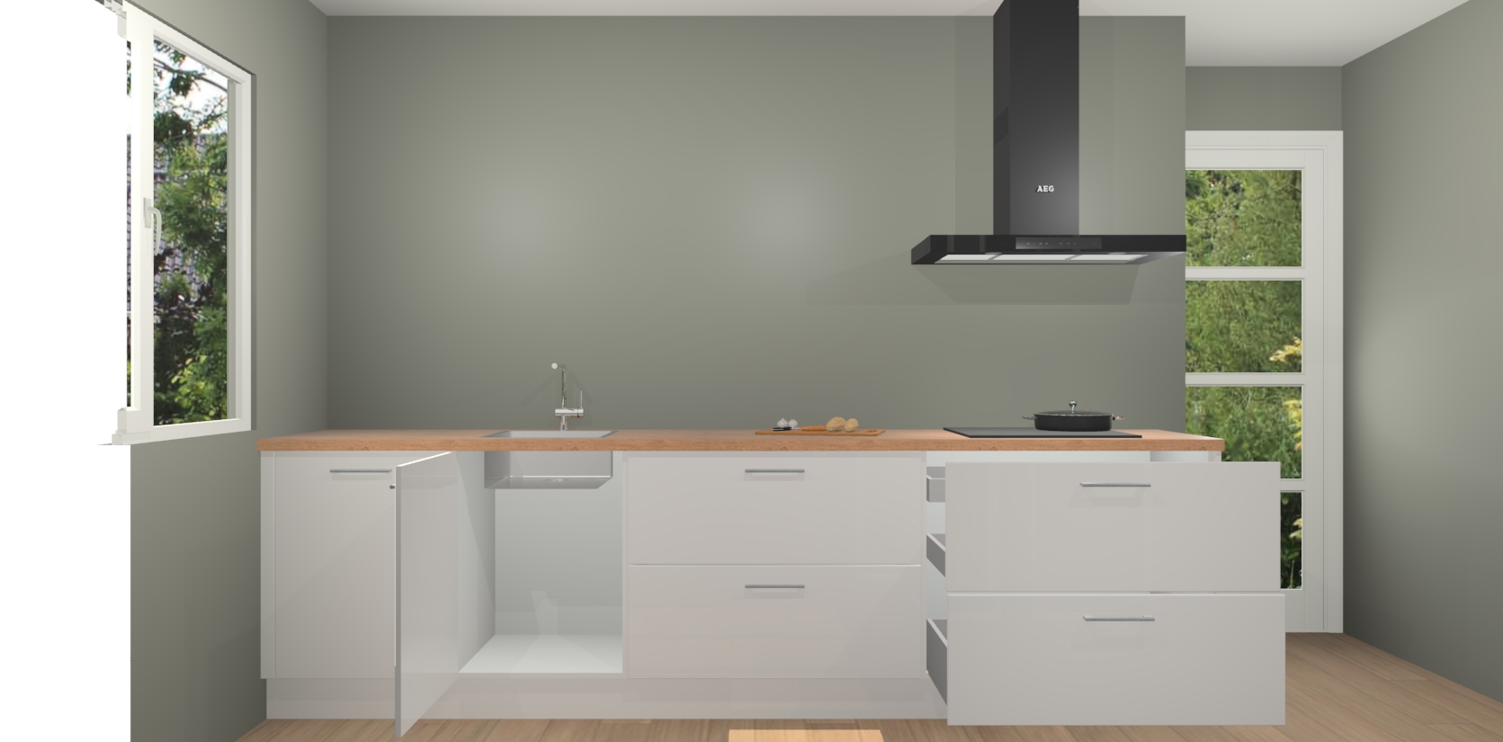 De softclose deuren openen en sluiten is ook heel eenvoudig - geniet van een moeiteloze keukenervaring, zelfs als er kinderen rondlopen. Voor extra gemak bij het plaatsen van uw bestelling bieden we ook een upgrade naar een kookplaat met geïntegreerde afzuiging.