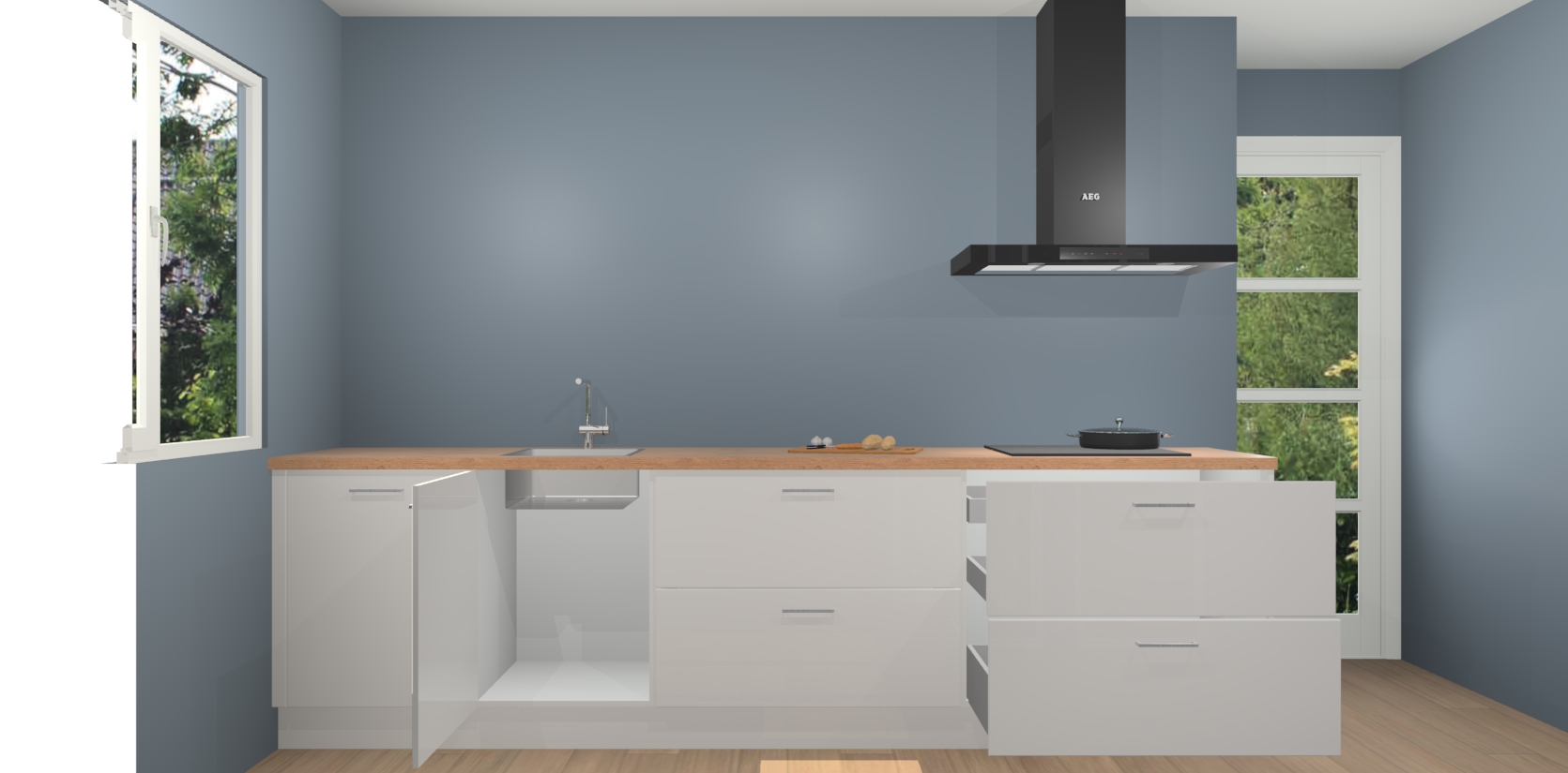 De softclose deuren openen en sluiten is ook heel eenvoudig - geniet van een moeiteloze keukenervaring, zelfs als er kinderen rondlopen. Voor extra gemak bij het plaatsen van uw bestelling bieden we ook een upgrade naar een kookplaat met geïntegreerde afzuiging.