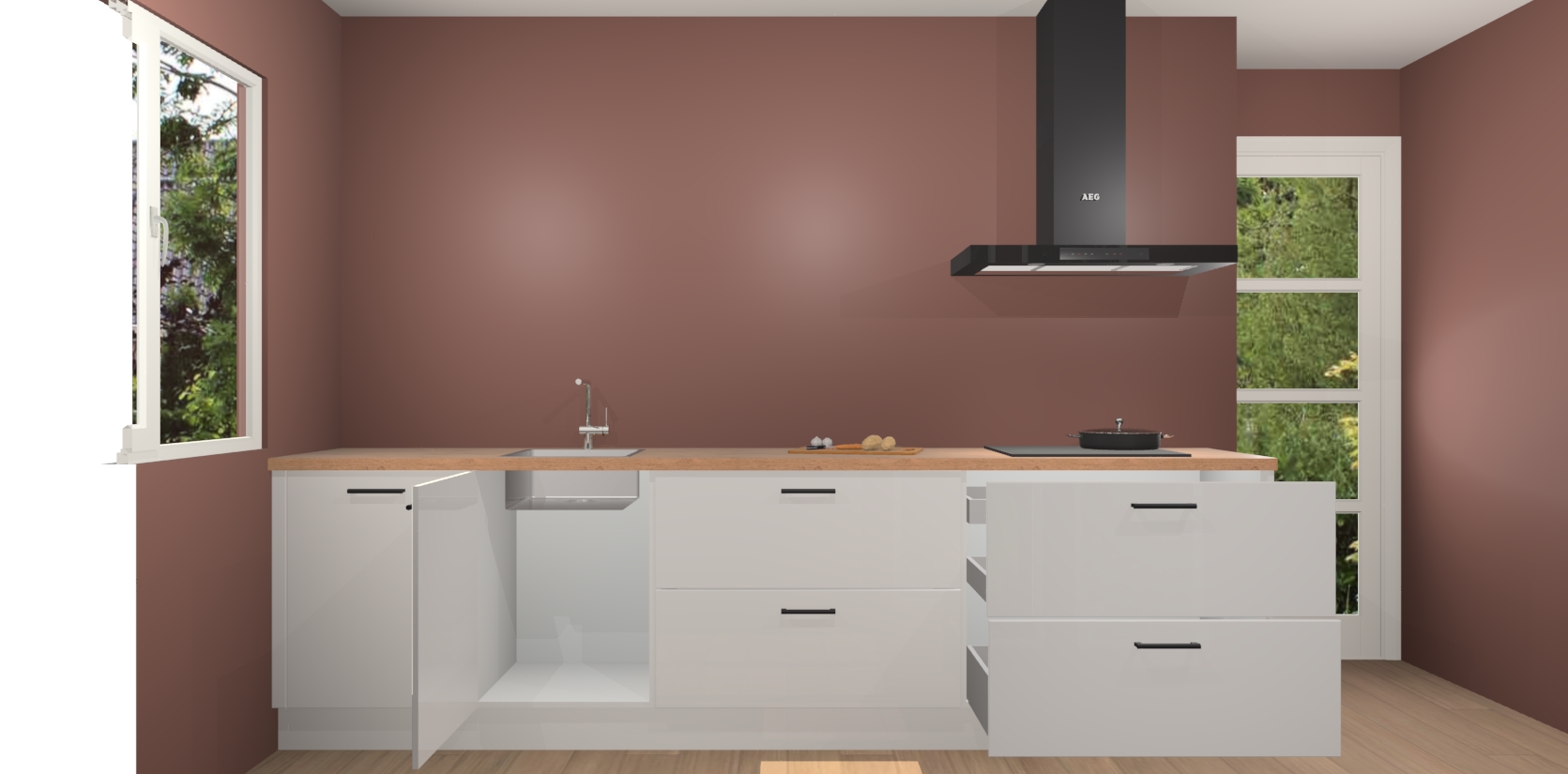 De softclose deuren openen en sluiten is ook heel eenvoudig - geniet van een moeiteloze keukenervaring, zelfs als er kinderen rondlopen. Voor extra gemak bij het plaatsen van uw bestelling bieden we ook een upgrade naar een kookplaat met geïntegreerde afzuiging.