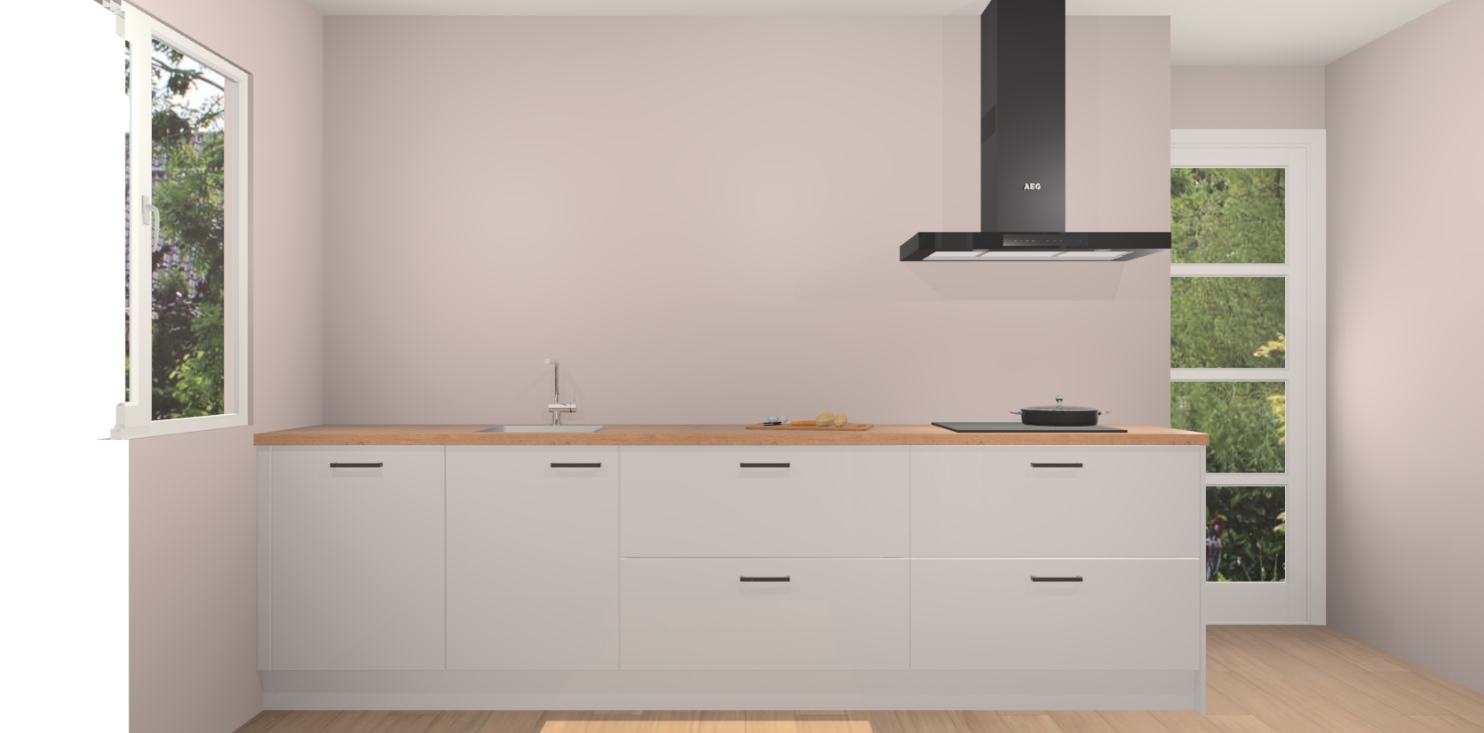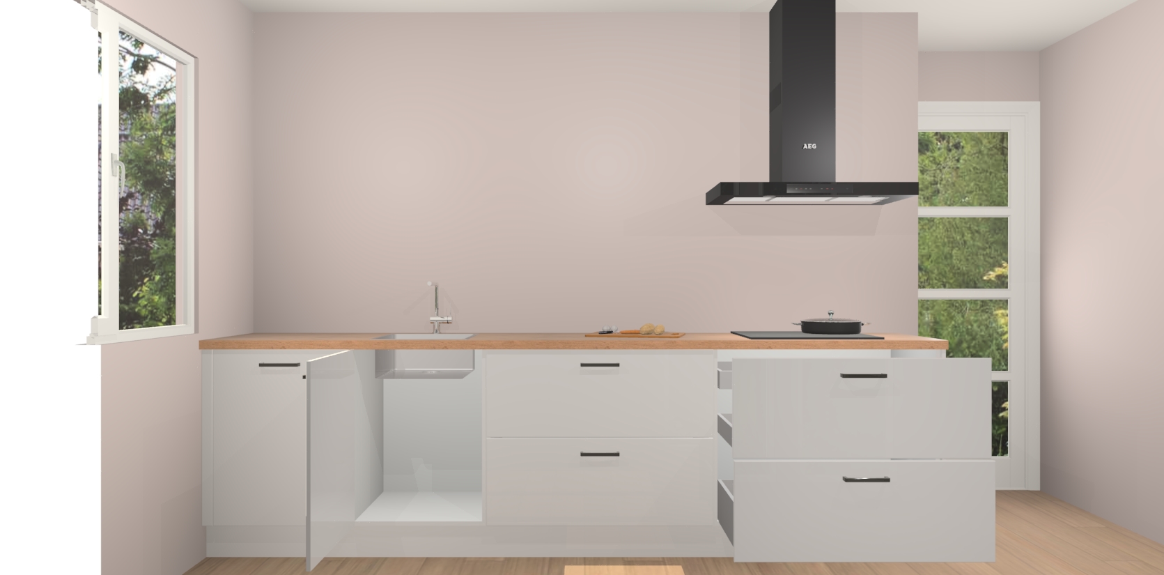 De softclose deuren openen en sluiten is ook heel eenvoudig - geniet van een moeiteloze keukenervaring, zelfs als er kinderen rondlopen. Voor extra gemak bij het plaatsen van uw bestelling bieden we ook een upgrade naar een kookplaat met geïntegreerde afzuiging.