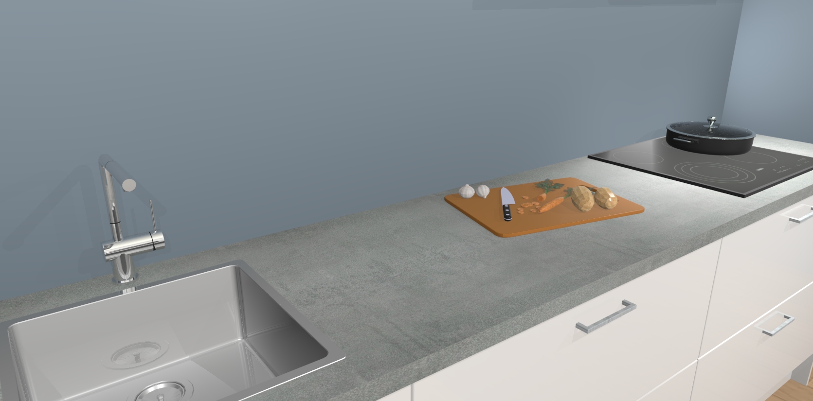 Inclusief plinten, stelpoten en werkblad