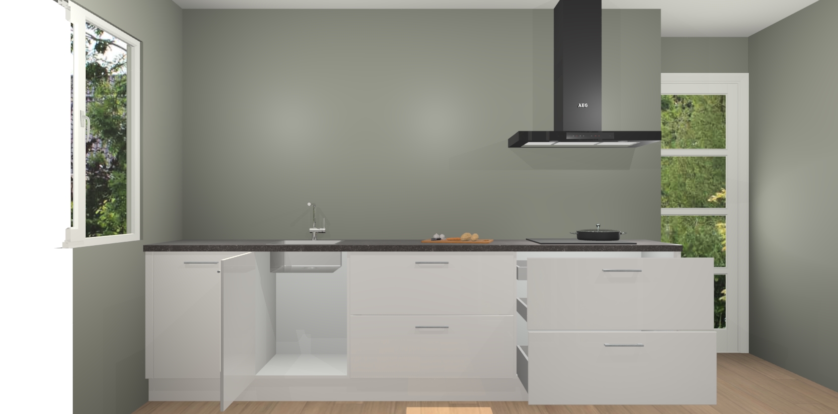 De softclose deuren openen en sluiten is ook heel eenvoudig - geniet van een moeiteloze keukenervaring, zelfs als er kinderen rondlopen. Voor extra gemak bij het plaatsen van uw bestelling bieden we ook een upgrade naar een kookplaat met geïntegreerde afzuiging.