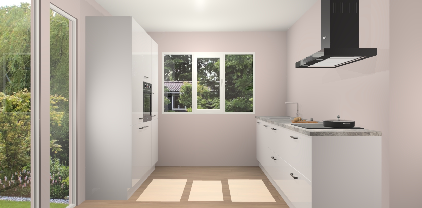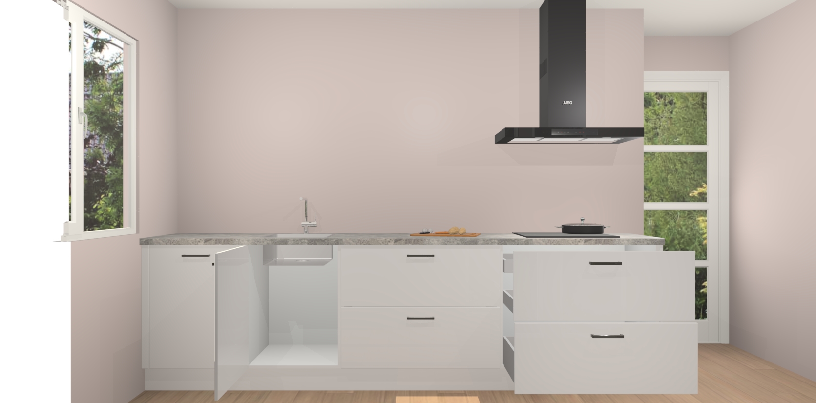 De softclose deuren openen en sluiten is ook heel eenvoudig - geniet van een moeiteloze keukenervaring, zelfs als er kinderen rondlopen. Voor extra gemak bij het plaatsen van uw bestelling bieden we ook een upgrade naar een kookplaat met geïntegreerde afzuiging.