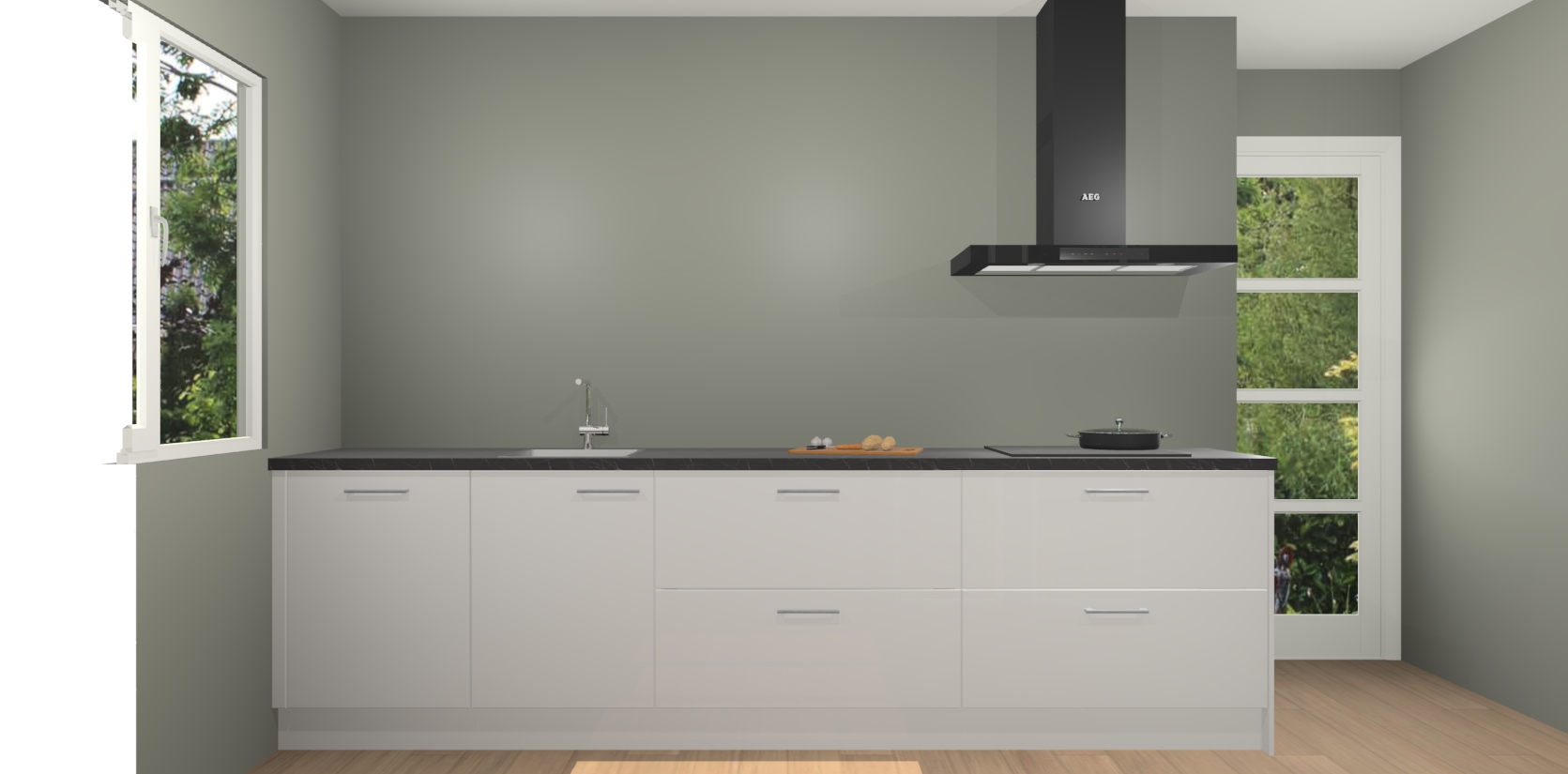 De softclose deuren openen en sluiten is ook heel eenvoudig - geniet van een moeiteloze keukenervaring, zelfs als er kinderen rondlopen. Voor extra gemak bij het plaatsen van uw bestelling bieden we ook een upgrade naar een kookplaat met geïntegreerde afzuiging.