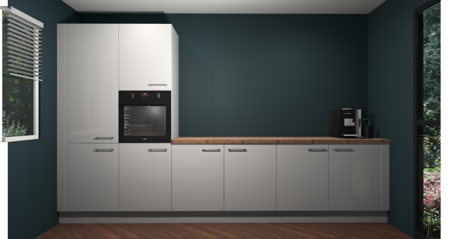 Welkom bij de Zijdegrijze hoogglans keuken Lusaka. Deze prachtige keuken zal de komende jaren het middelpunt van de belangstelling in uw huis zijn. Uitgerust met vijf inbouwapparaten komt u nooit kookgereedschap tekort. Bovendien geeft de warme houtlook elke ruimte een uitnodigende en tijdloze uitstraling.
