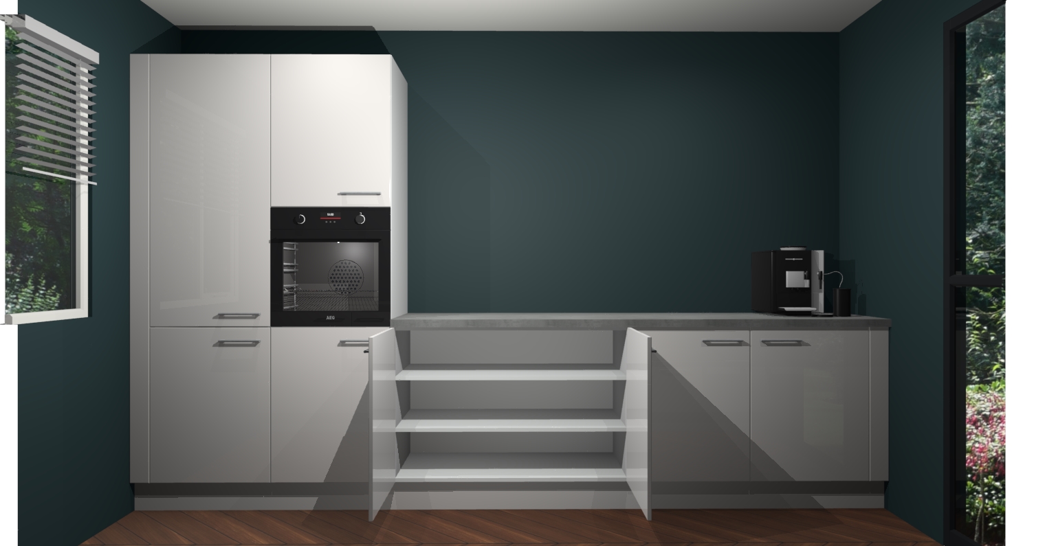 Welkom bij de Zijdegrijze hoogglans keuken Lusaka. Deze prachtige keuken zal de komende jaren het middelpunt van de belangstelling in uw huis zijn. Uitgerust met vijf inbouwapparaten komt u nooit kookgereedschap tekort. Bovendien geeft de warme houtlook elke ruimte een uitnodigende en tijdloze uitstraling.