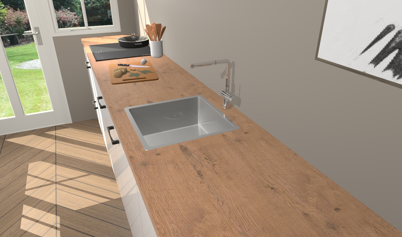 • Bij een hoekwerkblad zijn de hoeken in gevreesd en op maat gemaakt