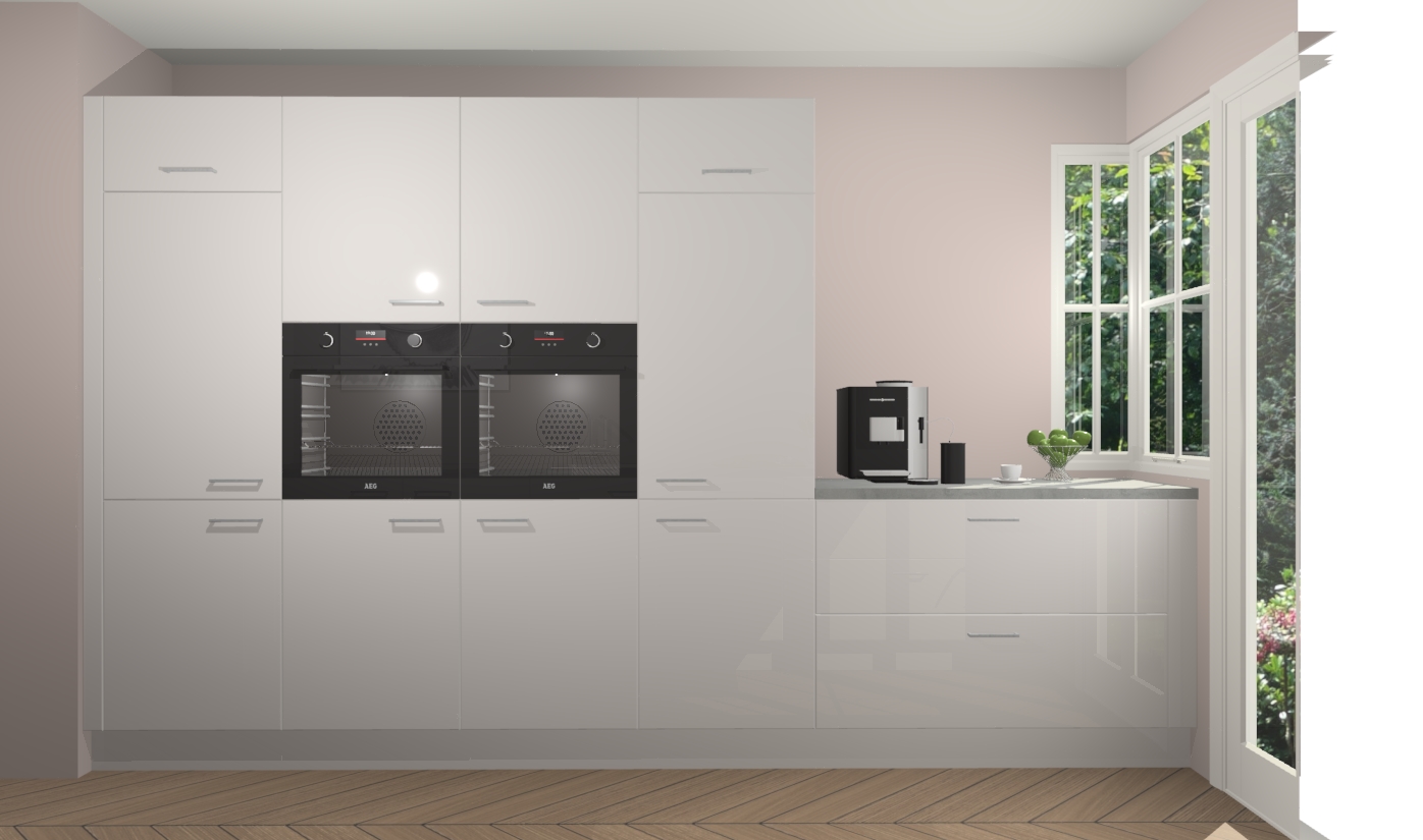 Een stijlvolle en praktische keuken als deze mag gezien worden. Dankzij de prachtige zijdegrijze hoogglans afwerking wordt de keuken gemakkelijk het middelpunt van uw huis - hij ziet er geweldig uit onder allerlei lichtomstandigheden, van dag tot nacht!