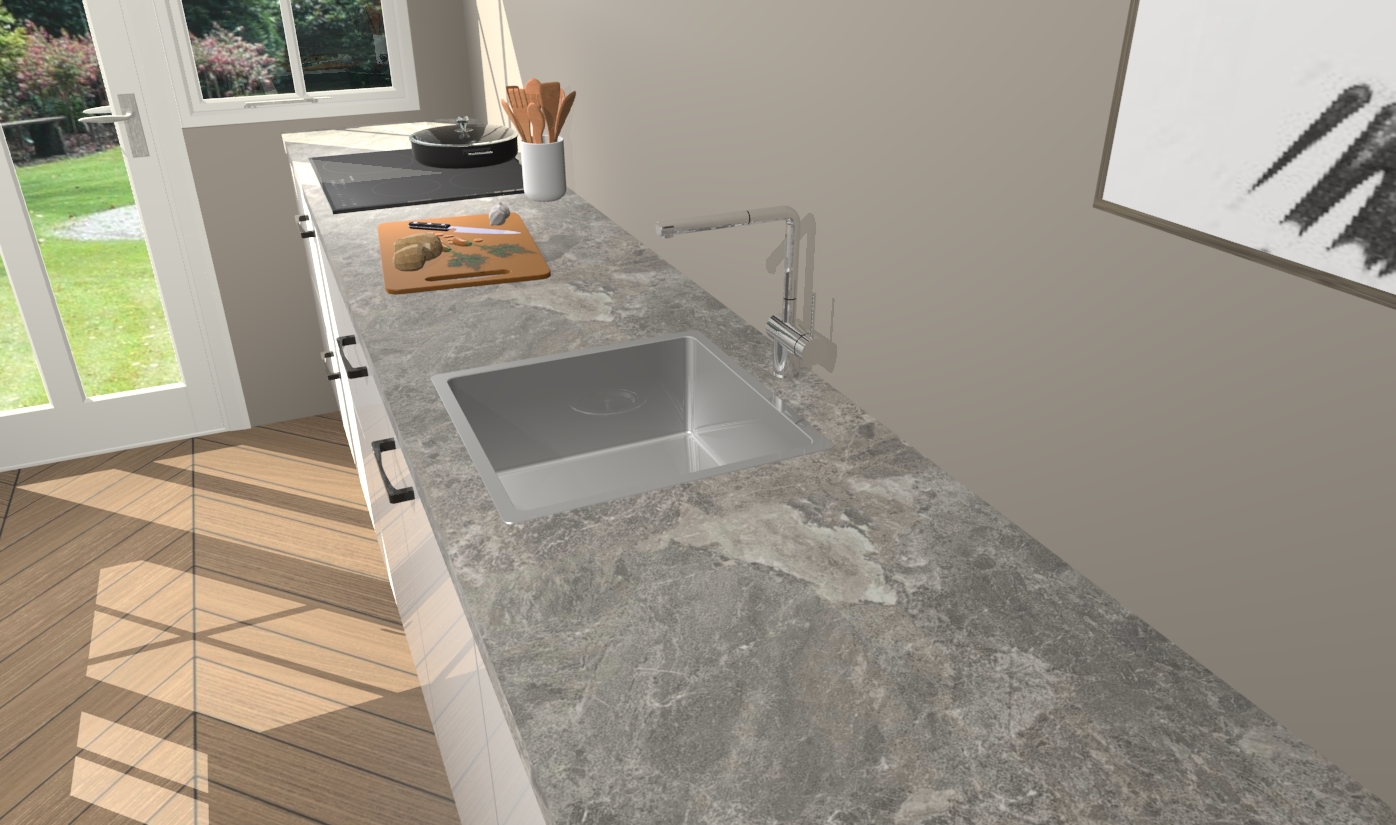 - Bij een hoekwerkblad zijn de hoeken in gevreesd en op maat gemaakt