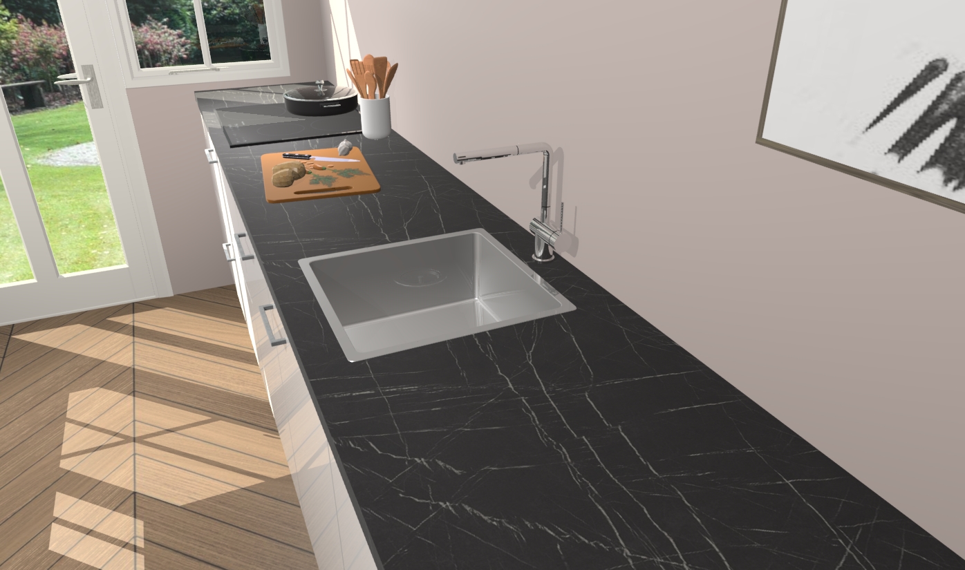 - Bij een hoekwerkblad zijn de hoeken in gevreesd en op maat gemaakt