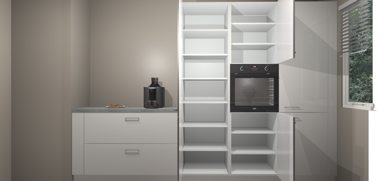 Een stijlvolle en praktische keuken als deze mag gezien worden. Dankzij de prachtige Zijdegrijze hoogglans afwerking wordt de keuken gemakkelijk het middelpunt van uw huis - hij ziet er geweldig uit onder allerlei lichtomstandigheden, van dag tot nacht!