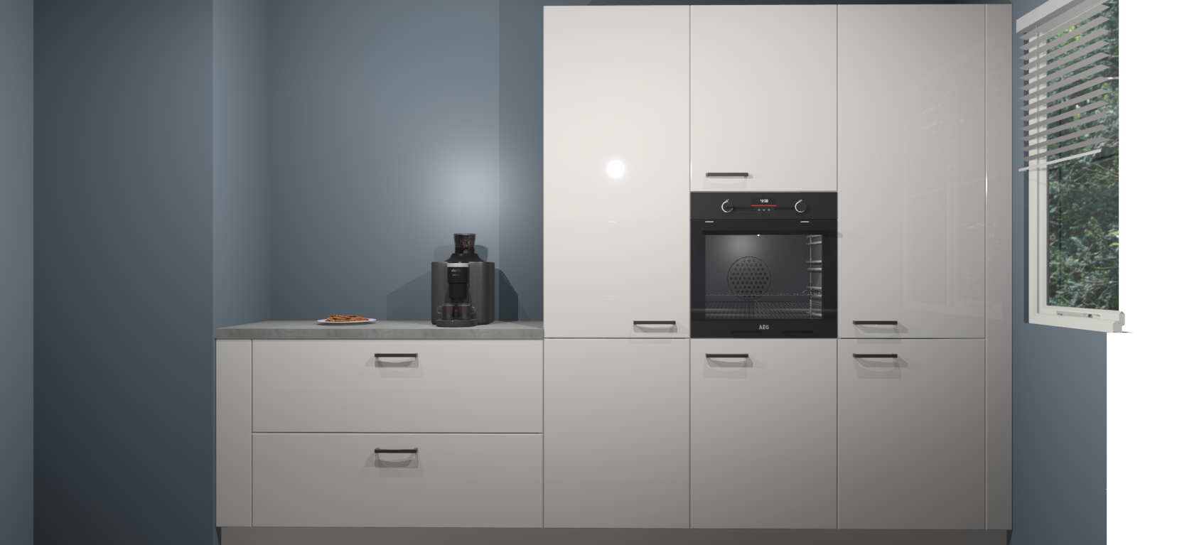 Een stijlvolle en praktische keuken als deze mag gezien worden. Dankzij de prachtige Zijdegrijze hoogglans afwerking wordt de keuken gemakkelijk het middelpunt van uw huis - hij ziet er geweldig uit onder allerlei lichtomstandigheden, van dag tot nacht!