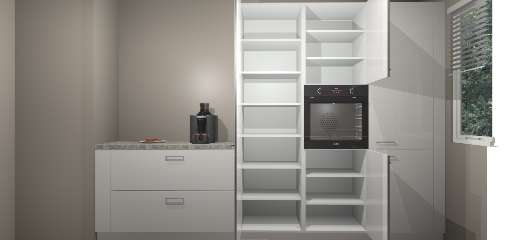 Een stijlvolle en praktische keuken als deze mag gezien worden. Dankzij de prachtige Zijdegrijze hoogglans afwerking wordt de keuken gemakkelijk het middelpunt van uw huis - hij ziet er geweldig uit onder allerlei lichtomstandigheden, van dag tot nacht!