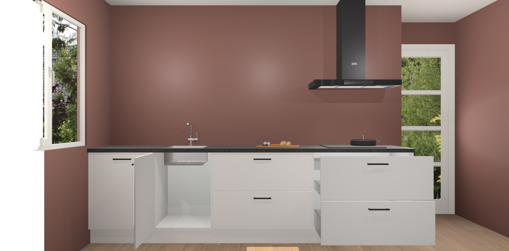 De softclose deuren openen en sluiten is ook heel eenvoudig - geniet van een moeiteloze keukenervaring, zelfs als er kinderen rondlopen. Voor extra gemak bij het plaatsen van uw bestelling bieden we ook een upgrade naar een kookplaat met geïntegreerde afzuiging.