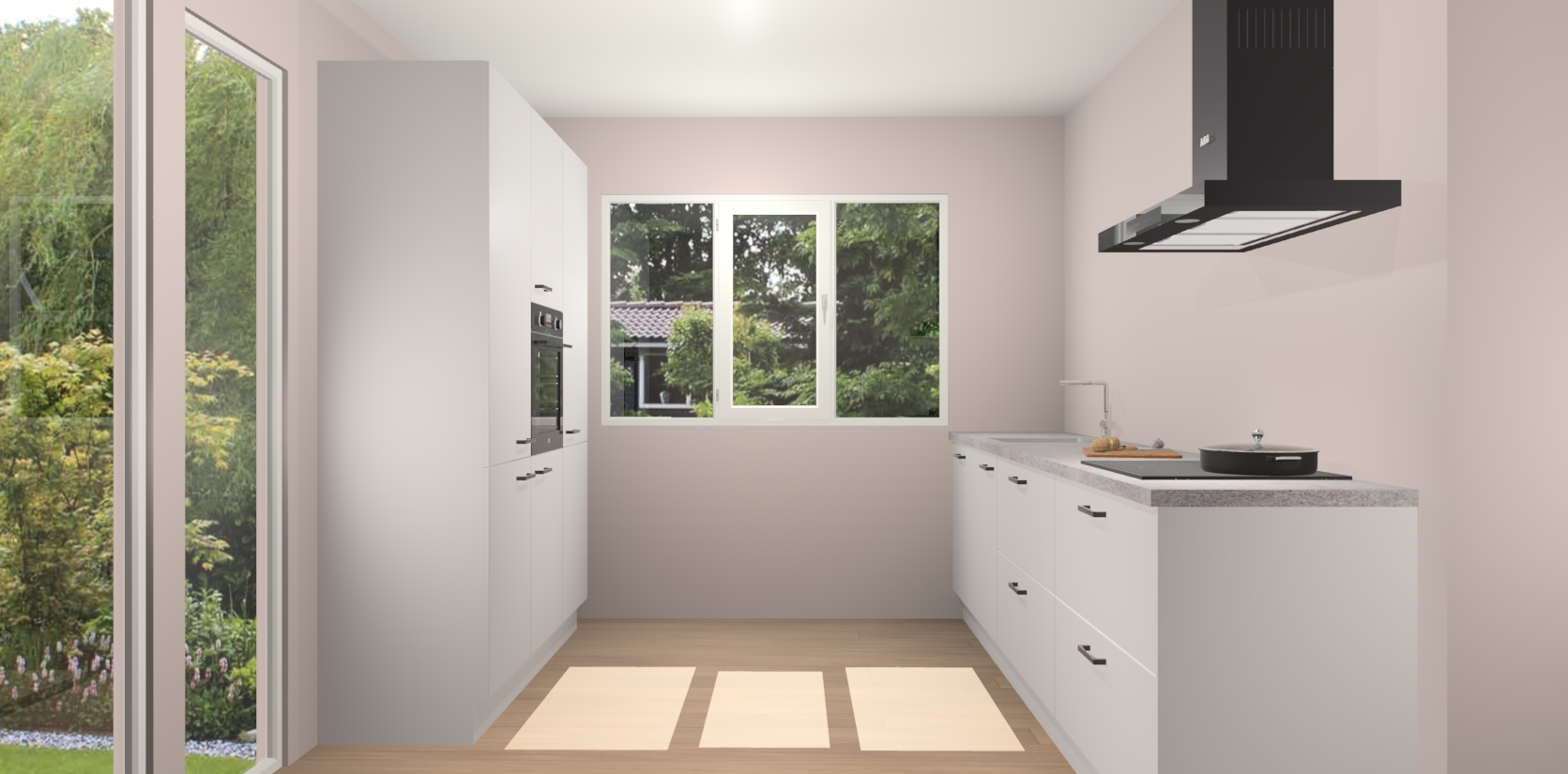 De softclose deuren openen en sluiten is ook heel eenvoudig - geniet van een moeiteloze keukenervaring, zelfs als er kinderen rondlopen. Voor extra gemak bij het plaatsen van uw bestelling bieden we ook een upgrade naar een kookplaat met geïntegreerde afzuiging.